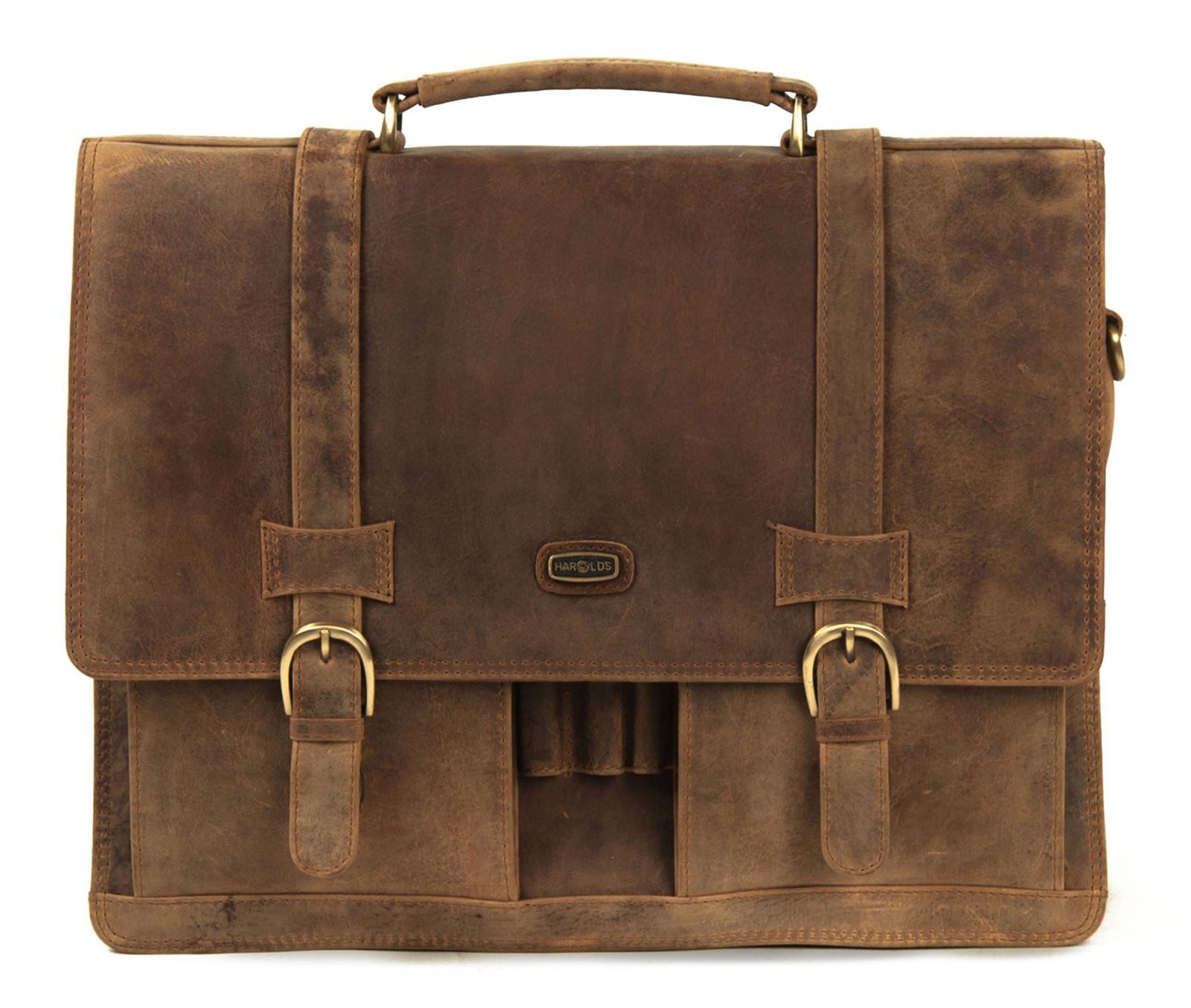Die Antic Briefcase Businesstasche ist eine kompakte Tasche für Beruf, Uni oder Geschäftsreise. Diese HAROLD'S Businesstasche ist ein stilvoller und zuverlässiger Begleiter. Das geölte, gewachste und offenporige Leder entwickelt im Laufe der Zeit eine schöne Patina und ist robust und langlebig. In der durchdachten Fächeraufteilung der HAROLD'S Antic Briefcase behält man stets den Überblick. Die Antic Businesstasche kann man am abnehmbaren Schulterriemen oder am Handgriff tragen. Die Tasche wirkt mal leger, mal authentisch "old school" und lässt sich als Aktentasche im Beruf wie auch als individuelle Businesstasche auf Reisen nutzen.