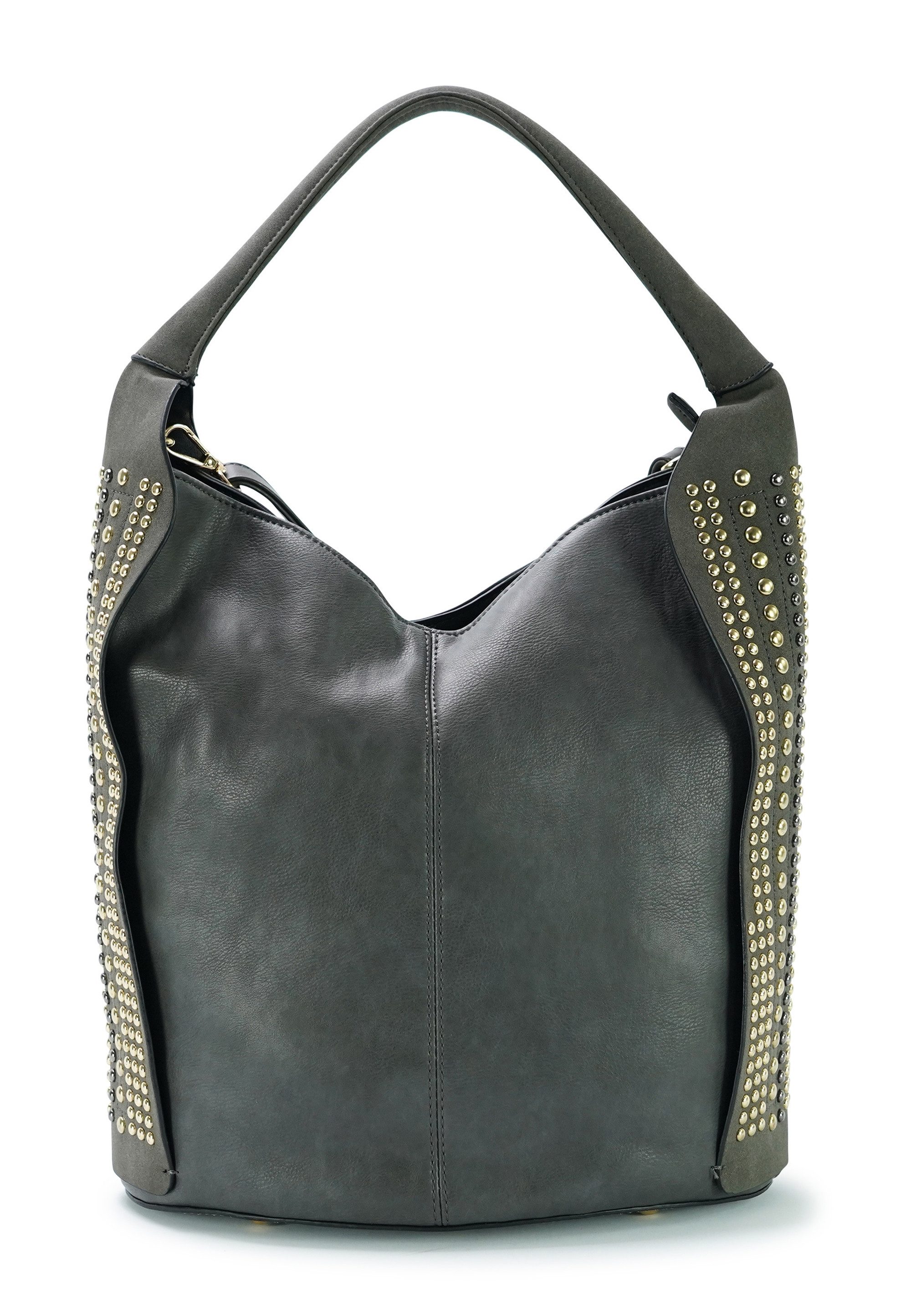 Robuste Handtasche der Marke Harpa in den Maßen 39 x 30 x 8 cm aus hochwertigem Kunstleder. Diese Tasche besticht durch ihr modernes Design und die aufwendige Verarbeitung. Das Design überzeugt durch die abgesetzten Partien aus Wildlederimitat und die Multicolor-Nieten. Den Schulterriemen kannst du jederzeit in der Länge verstellen, oder auch einfach entfernen, wodurch sich diese Tasche an deine Bedürfnisse anpasst. Die Tasche ist aus robustem Kunstleder gearbeitet, wodurch sich die Form stabil hält. Der Boden ist oval gearbeitet, was dieser Tasche eine moderne Form verleiht und gleichzeitig für mehr Stauraum im Hauptfach sorgt. Selbstverständlich sind auch verschiedene Steck- und Reißverschlussfächer eingearbeitet, sodass du problemlos in deiner Tasche Ordnung halten kannst.