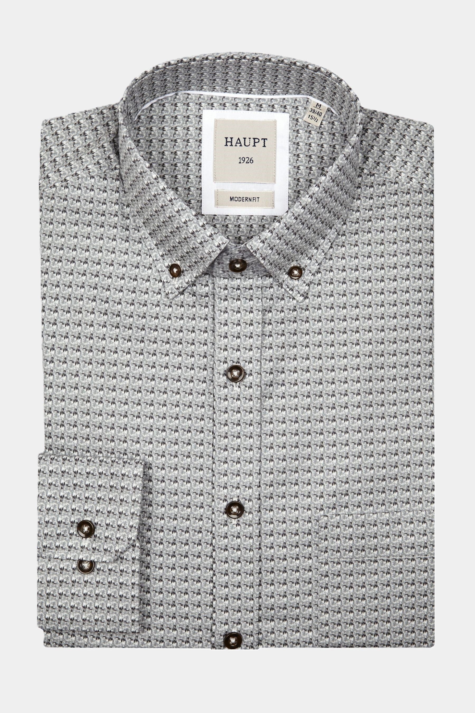 Geschnitten im Modern Fit, bietet es eine zeitgemäße, leicht taillierte Passform und hohen Tragekomfort. Der klassische Button-Down-Kragen sorgt für einen stets akkuraten Look. Durch das dezente Design ist dieses graue gemusterte Herrenhemd perfekt für Business-Casual, das Büro oder stilvolle Freizeit-Outfits. Ein hochwertiges Haupt Freizeithemd, das sich leicht kombinieren lässt.