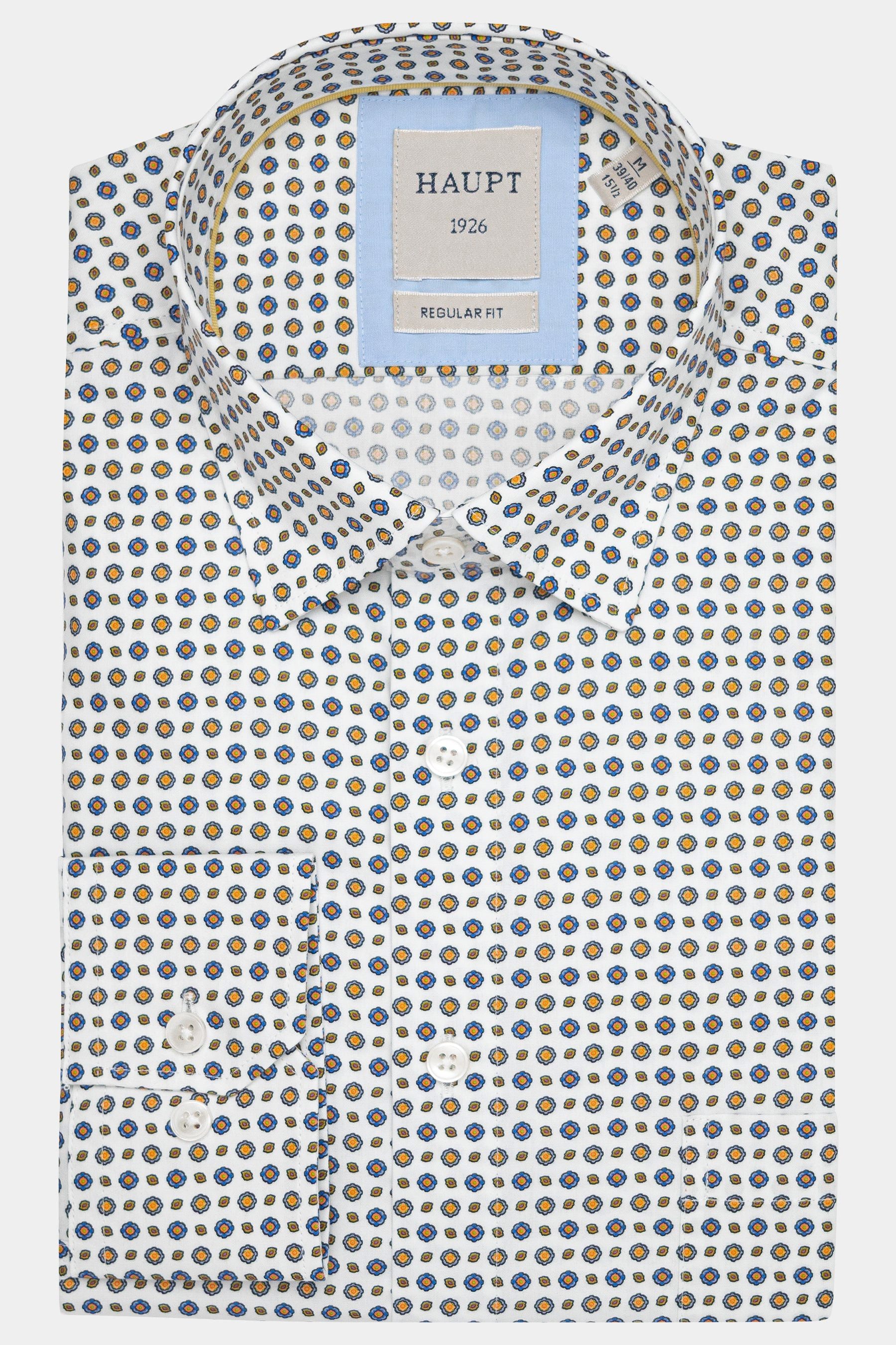 Mit diesem Langarmhemd von der Marke Haupt bringst du Abwechslung in deinen Kleiderschrank. Der moderne Allover-Print verleiht dem Hemd einen einzigartigen, modischen Look – perfekt für alle, die sich gerne stilvoll und individuell kleiden. Der Regular Fit sorgt für eine klassische Passform mit angenehmem Tragegefühl, während die Knopfleiste und die aufgesetzte Brusttasche für einen zeitlosen, funktionalen Touch sorgen.