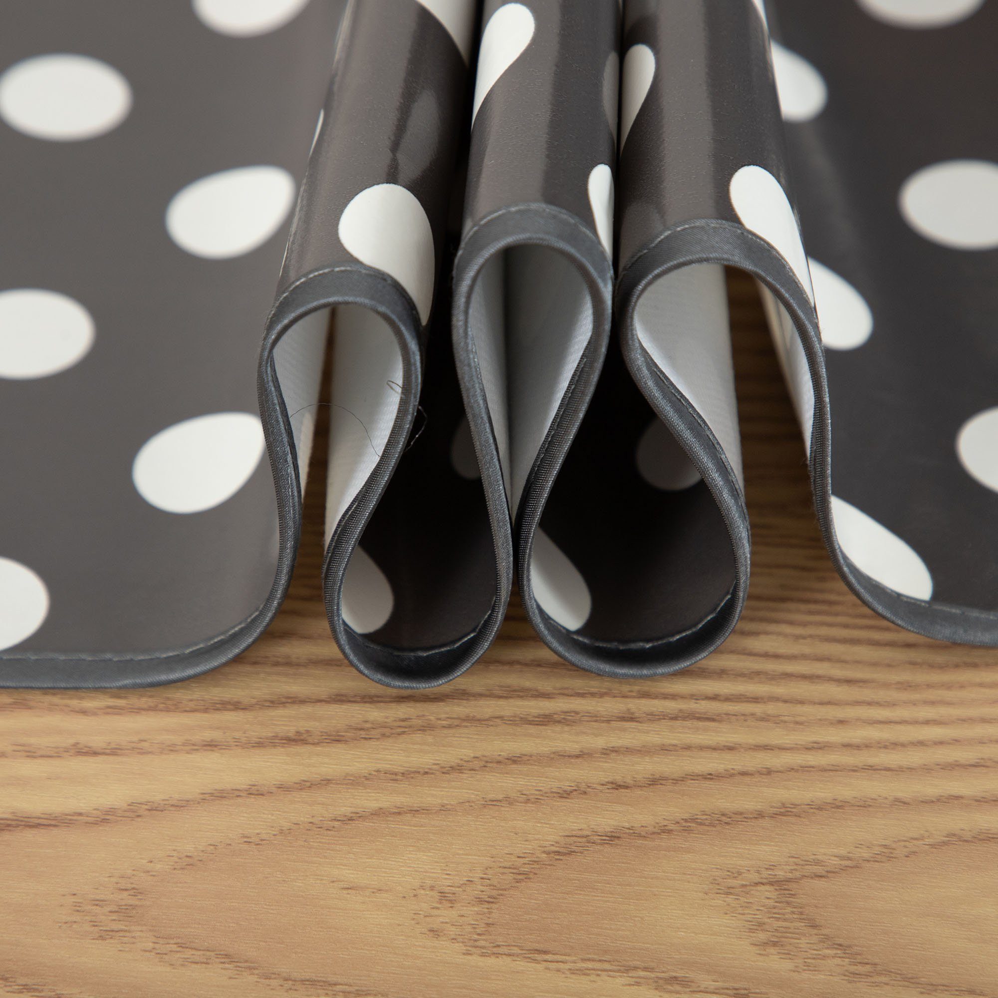 Die Tischdecke besteht aus hochwertigem PVC-beschichtetem Vliesstoff und überzeugt durch ihre wasserabweisenden Eigenschaften, die einen beeindruckenden Lotuseffekt erzeugen. Das Material ist nicht nur robust, sondern auch schmutzabweisend, was sie perfekt für den Innen- und Außenbereich macht. Die schwarze Grundfarbe mit weißen Punkten verleiht Ihrem Tisch eine zeitlose Eleganz.