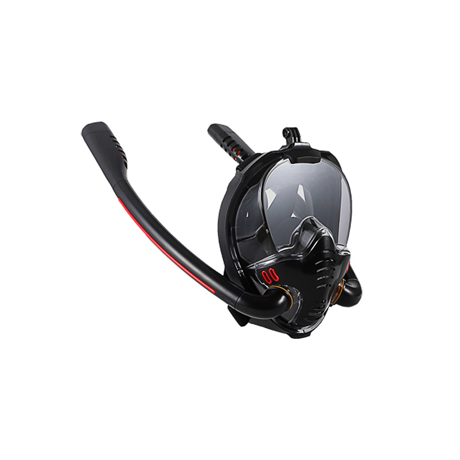 Schnorchelmaske verwenden unidirektionale (External Circulation) Atemtrennung, um die exspiratorische und inspiratorische Atmung mechanisch zu trennen.Der doppelte Atemschlauch versorgt Sie mit genügend Luft und das ausgeatmete CO² wird vollständig von der Vorderseite der Maske ausgestoßen, um Brustenge und Atembeschwerden zu verhindern.