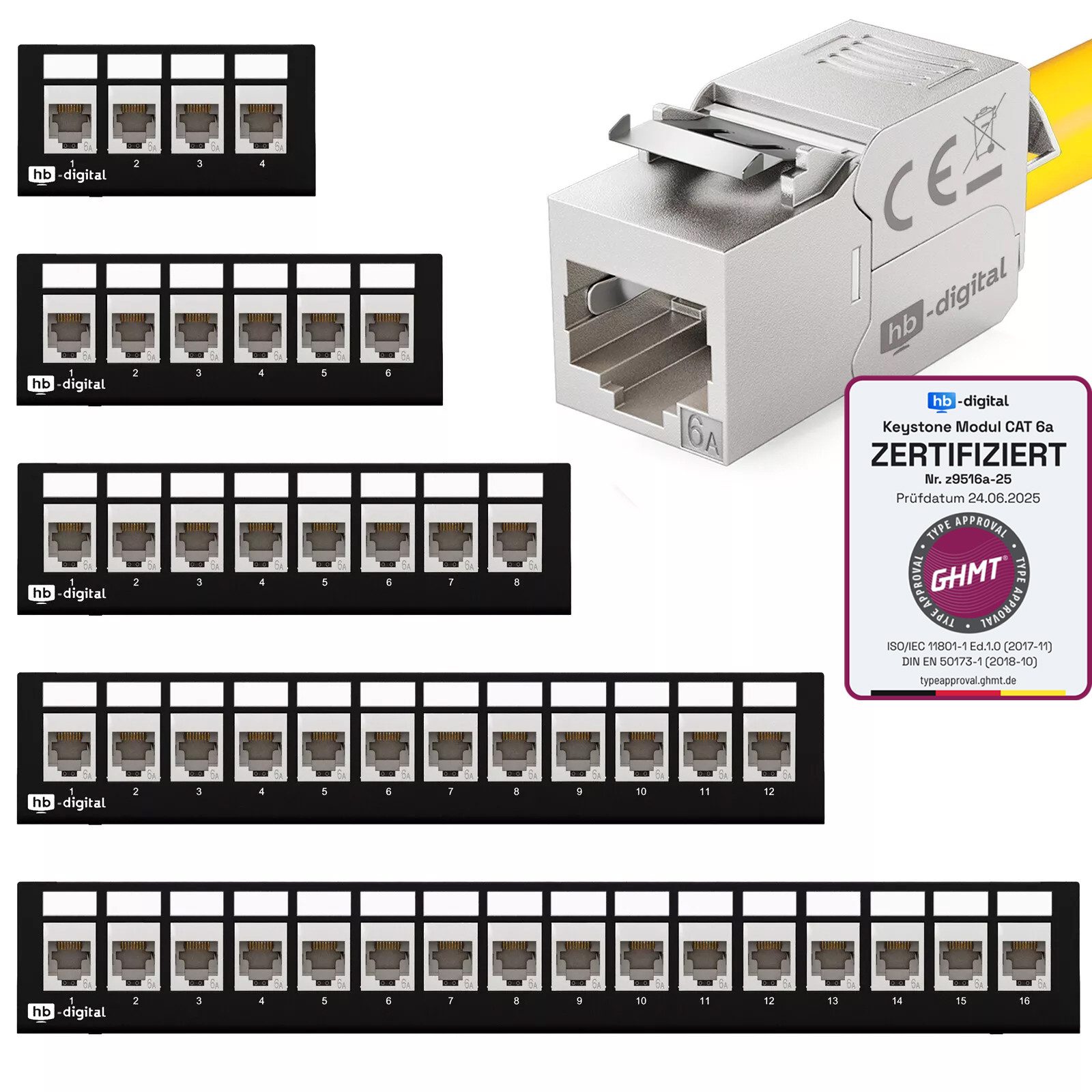 kompatibel mit allen gängigen Keystone-Modulen wie z.B. USB, Koax-Stecker, BNC-Anschluss, RJ-11, RJ-45, RCA-Anschluss, AUX, Toslink, HDMI, mini DP usw.