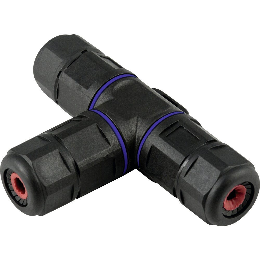 Der wasserdichte 3-polige T-Kabelverbinder eignet sich als Verbindungs- oder Reparaturverbinder für eine schnelle Verbindung von Erdkabeln, Gummikabeln oder Versorgungskabeln. Geeignet für Kabel von 7 bis 13 mm (bis NYY 3x 1,5mm²) und Spannungen bis 230 V. Die Verwendung erfolgt ohne Gießharz, der Verbinder kann jederzeit wieder geöffnet werden. Beständig gegen Frost und die meisten in Böden vorkommenden Säuren. Schutzart IP68 für Wassertiefe bis 1 m. Kann einfach im Erdreich verlegt werden