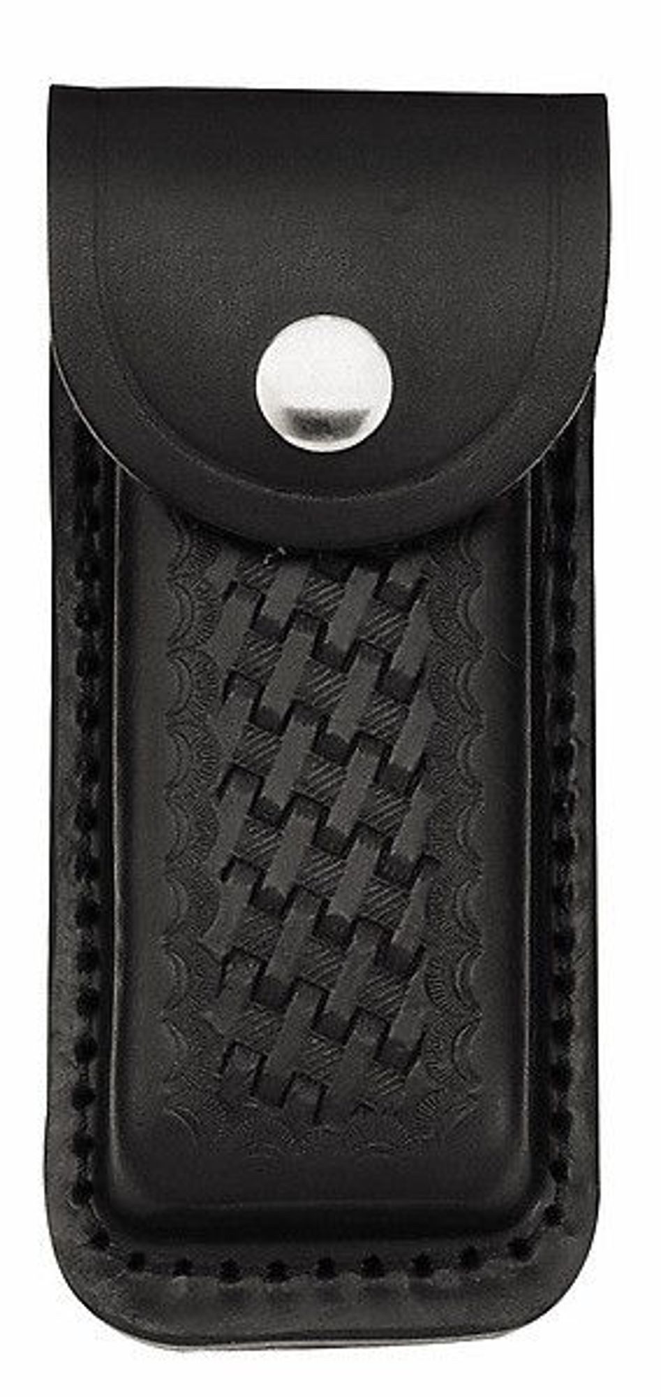 Herbertz legt mit diesem schwarzen Lederetui ein extrem breites Modell vor, in dem auch wuchtige Messer bequem Platz finden. Das Etui kann längs oder quer am Gürtel getragen werden. Für Messer mit einer Heftlänge bis zu 12,5 cm.