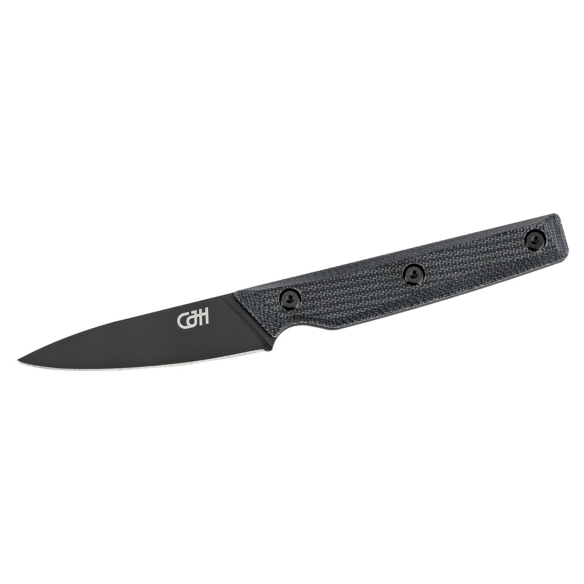 Entdecken Sie das CJH Schälmesser, ein Meisterwerk der Schneidekunst, das in keiner Küche fehlen darf. Mit seiner eleganten schwarzen Farbe und der hochwertigen Klinge aus VG10-Stahl bietet dieses Messer nicht nur ästhetische Schönheit, sondern auch außergewöhnliche Funktionalität. Die feststehende Klinge mit einer Länge von 9 cm sorgt für präzises und müheloses Schneiden, während der ergonomisch gestaltete Griff aus Micarta, mit einer Länge von 11 cm, perfekten Halt und Komfort gewährleistet. Trotz seines geringen Gewichts von nur 90 g ist es robust und langlebig. Verpackt in einer stilvollen und praktischen Box, ist dieses Messer auch das ideale Geschenk für jeden Koch-Enthusiasten.