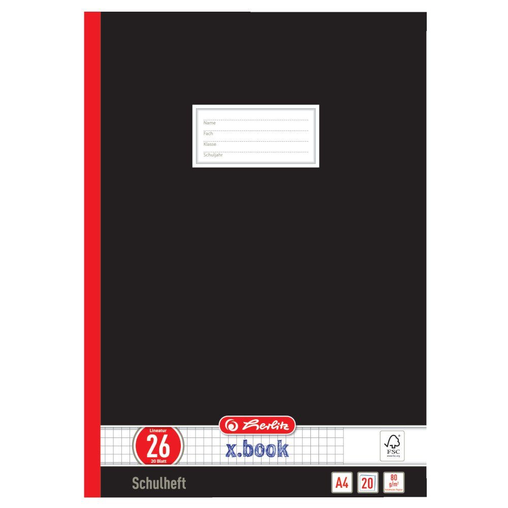 Herlitz Schulheft 5 Herlitz Oberschulhefte / A4 / 20 Blatt / Lin. 26 kariert mit Rand