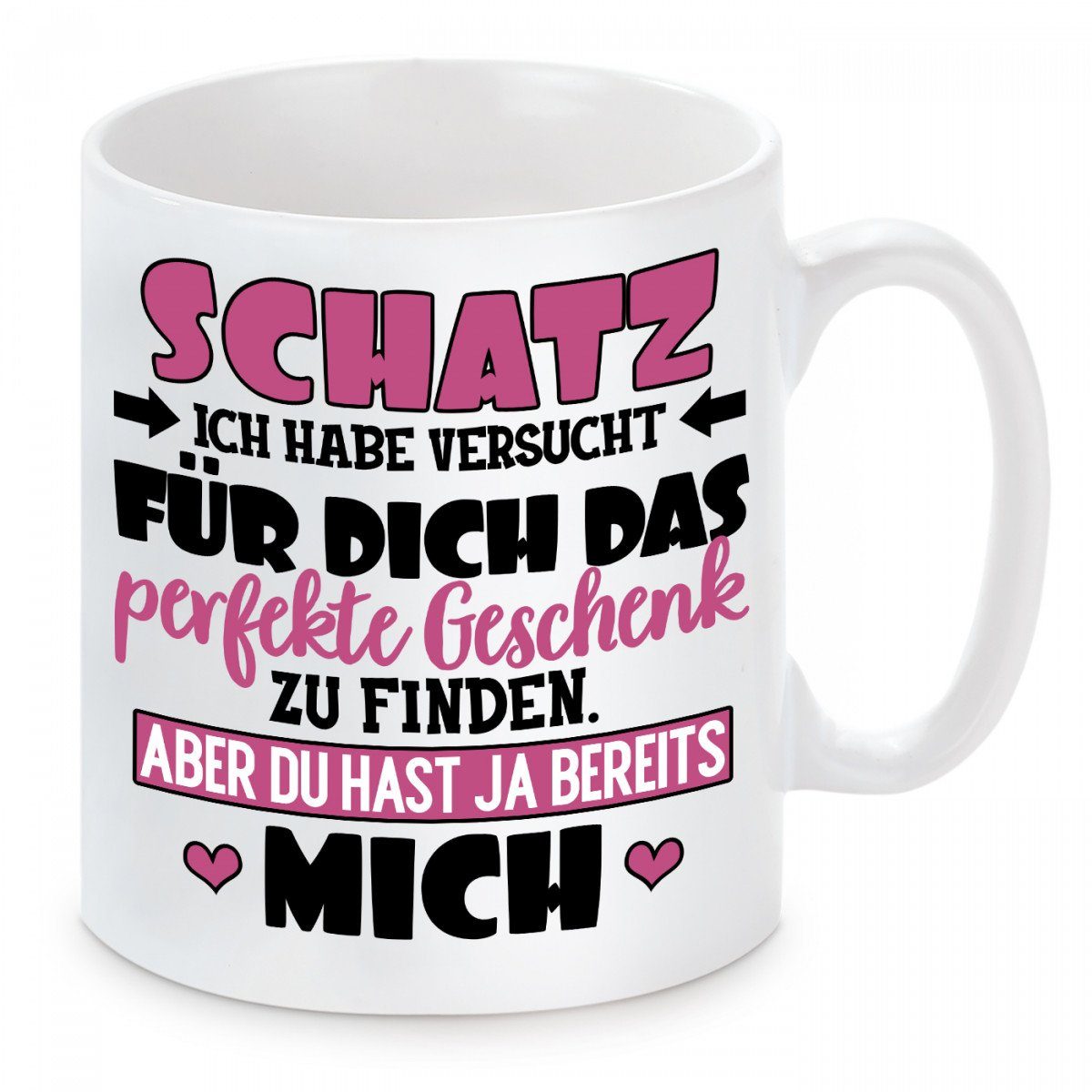 Herzbotschaft Tasse Kaffeebecher mit Motiv Schatz ich habe versucht, Keramik, Kaffeetasse spülmaschinenfest und mikrowellengeeignet