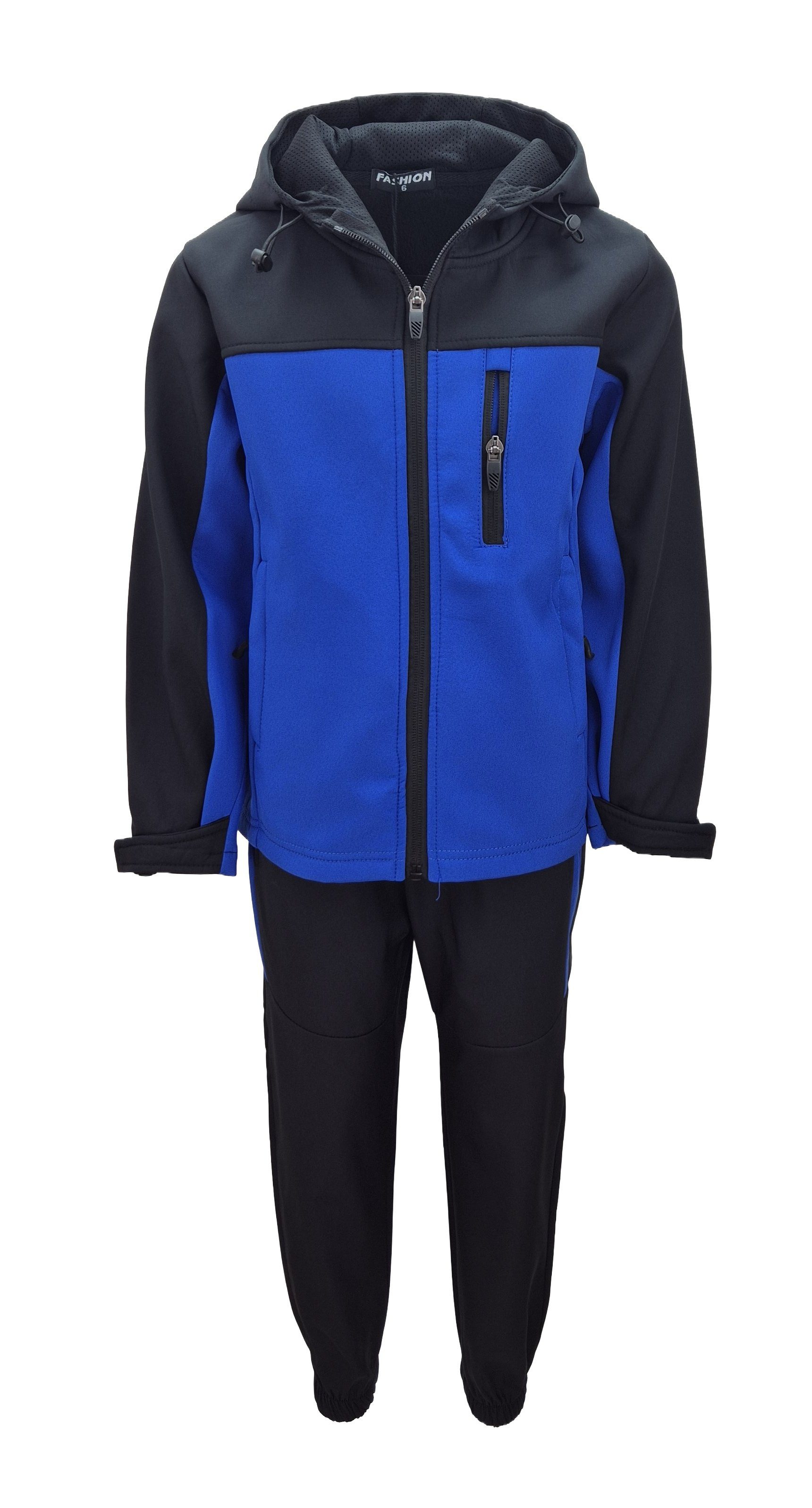Dieser praktische Softshell-Anzug für Jungen bietet optimalen Schutz und Komfort für aktive Tage im Freien. Die leichte, gefütterte Jacke hält angenehm warm und schützt zuverlässig vor Wind und Wetter. Ausgestattet mit praktischen Reißverschlusstaschen lassen sich kleine Schätze sicher verstauen. Die Kapuze mit verstellbarem Kordelzug sorgt für zusätzlichen Schutz und passt sich individuell an. Die passende Hose ergänzt das Set perfekt mit ihren bequemen Eingrifftaschen und bietet viel Bewegungsfreiheit. Das robuste, atmungsaktive Material macht den Anzug ideal für Outdoor-Abenteuer bei wechselhaftem Wetter. Ein stylisches und funktionales Set, das in keiner Kinder-Garderobe fehlen darf!