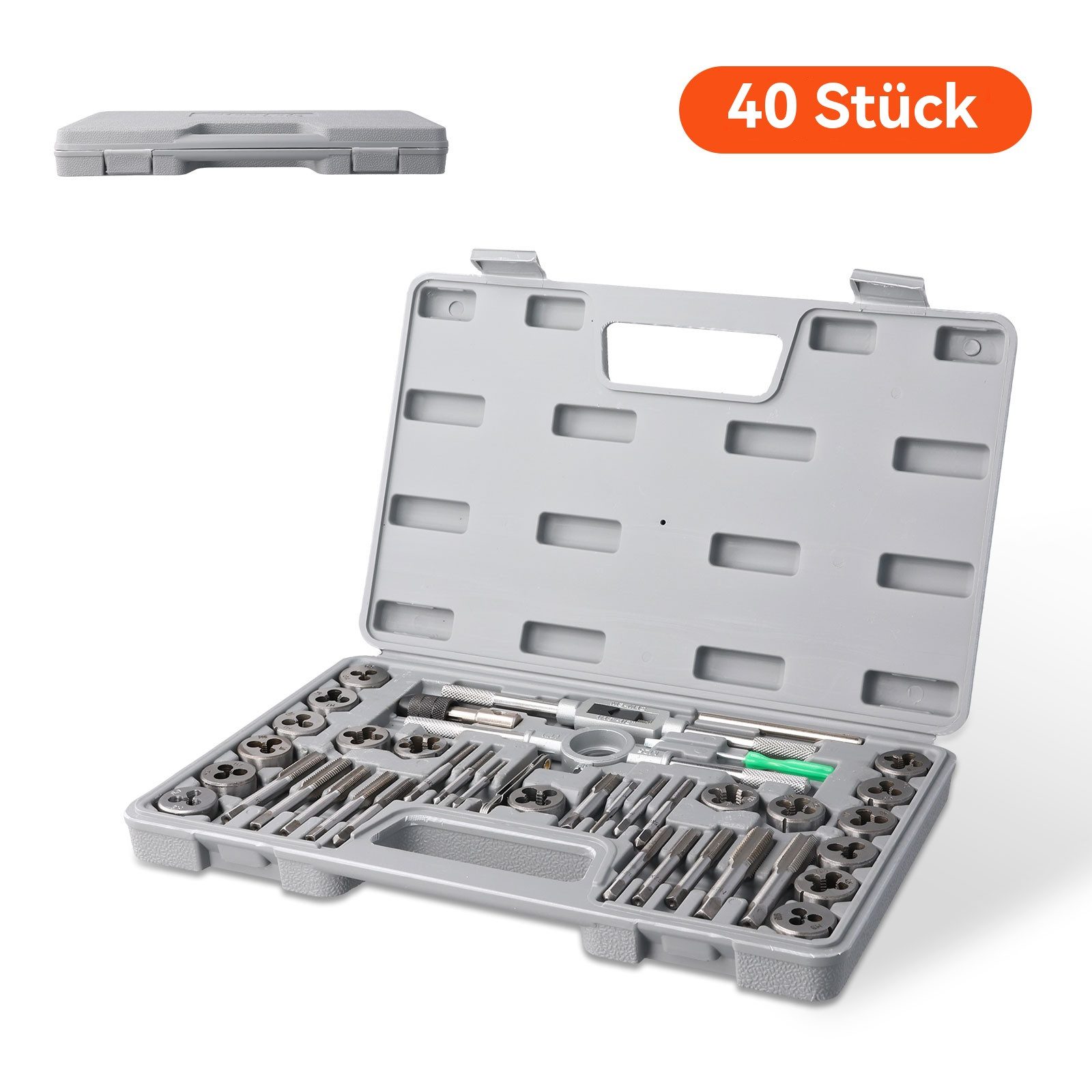 Tragbarer Aufbewahrungskoffer: Machen Sie sich nie wieder Sorgen um verlorene oder verlegte Werkzeuge! Unsere Gewindebohrer- und Gewindeschneidersätze werden in einem praktischen und tragbaren Aufbewahrungskoffer geliefert, sodass Sie Ihre Werkzeuge mühelos überallhin mitnehmen können. Er ist ideal für die Instandhaltung zu Hause, einschließlich Türrahmen, Beleuchtungsinstallation, Sanitär, Gasleitungen, HLK-Lüftungskanäle, Komponenteninstallation, Reparaturen und Kfz-Wartung.