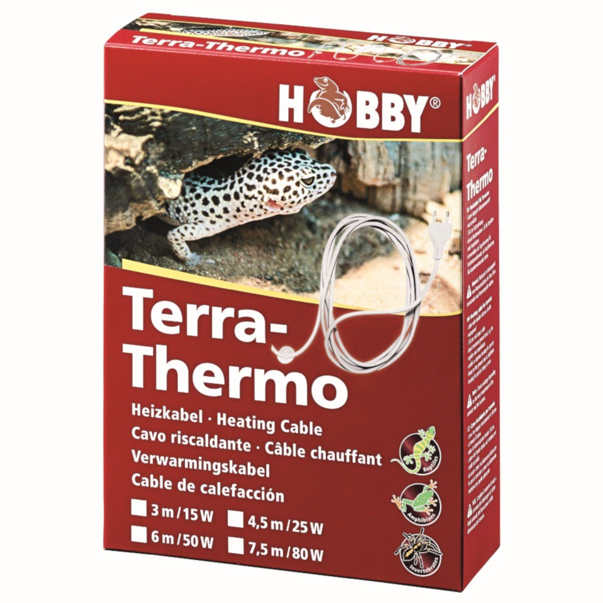 Terra-Thermo Heizkabel sind doppelt silikonummantelt und wasserdicht. Sie sollten nur mit ausreichend Bodengrund abgedeckt betrieben werden. HOBBY verfügt über eines der größten Terraristik Bodengrund Sortimente. Fragen Sie doch einmal Ihren Händler nach Terrano Bodengründen. Beim Auswechseln des Bodengrundes nehmen Sie zuerst das Heizkabel außer Betrieb, lassen es abkühlen und reinigen die Glasscheibe erst dann mit Reptix Des Reinigungsspray.