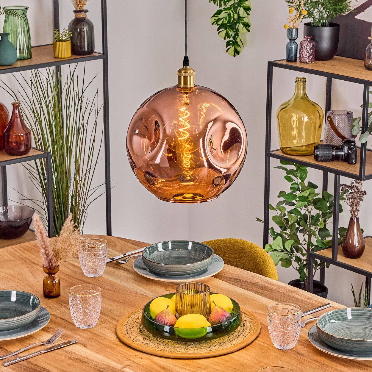 hofstein Hängeleuchte Hängelampe aus Metall/Glas in Gold-/Kupferfarben, ohne Leuchtmittel, Hängeleuchte im Retro/Vintage-Design (Schirm Ø 30 cm), 1 x E27
