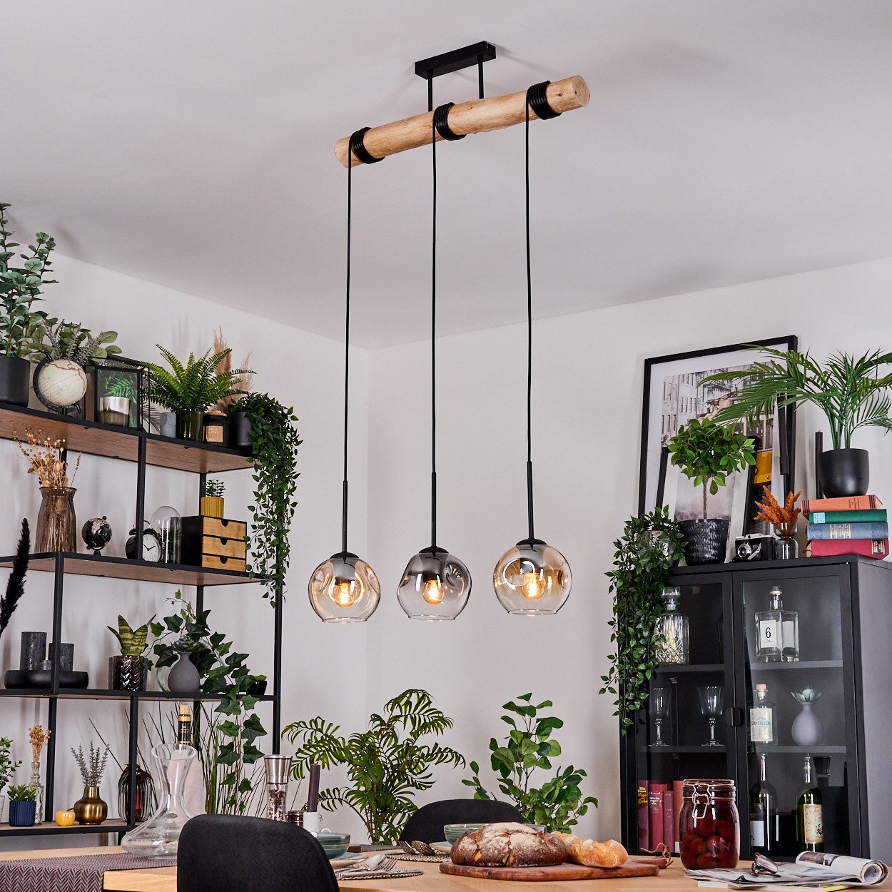 hofstein Hängeleuchte Hängelampe aus Metall/Holz/Glas in Schwarz/Natur/Rauch/Bernstein/Klar, ohne Leuchtmittel, moderne Pendelleuchte im Boho/Vintage-Design (Schirme 15 cm), 3 x E27