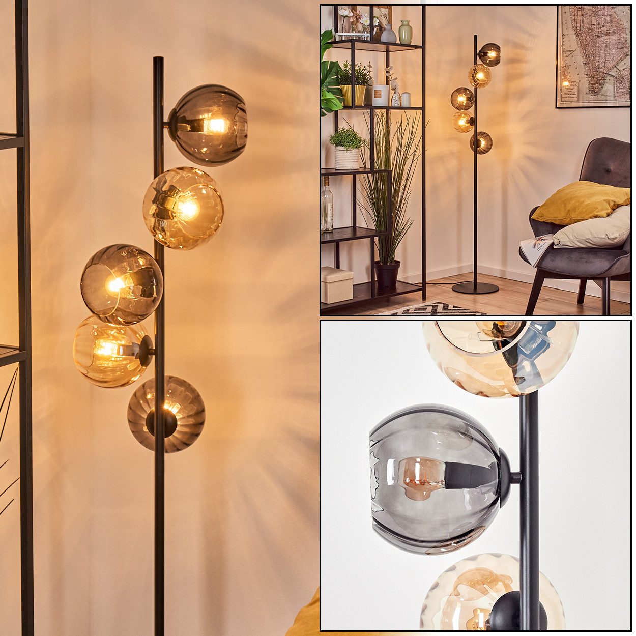 hofstein Stehlampe Stehlampe aus Metall/Riffelglas in Schwarz/Rauch-/Bernsteinfarben, Stehleuchte im Retro/Vintage-Design, Fußschalter, 160 cm, 5 x E14