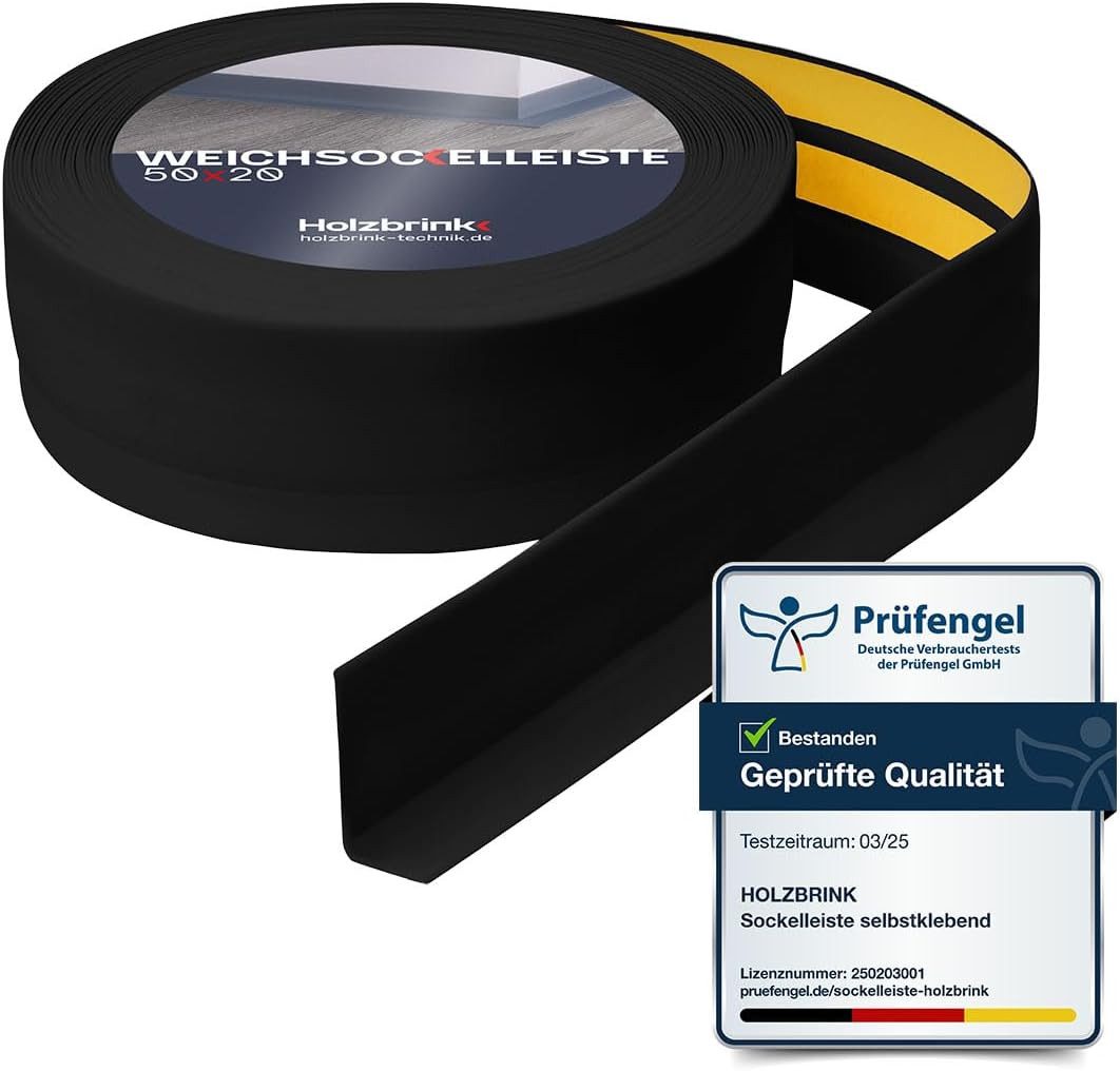 Suchen Sie nach einer einfachen und ästhetischen Lösung für den perfekten Abschluss Ihrer Innenräume? Die Weichsockelleiste selbstklebend von Holzbrink ist eine funktionale Wahl, um Fugen, Unebenheiten und Übergänge zwischen Wand und Boden, an Arbeitsplatten, Fenstern oder in Ecken effektiv zu kaschieren. Hergestellt aus flexiblem PVC, passt sie sich jeder Oberfläche an, ohne sich zu verformen. Dank ihrer Widerstandsfähigkeit gegen Feuchtigkeit, Schimmel, Pilze und Chemikalien eignet sie sich nicht nur für Wohn- und Schlafzimmer, sondern auch für Küchen, Bäder und Gewerberäume. Die selbstklebende Variante ist mit zwei starken Acrylklebestreifen ausgestattet, die eine dauerhafte und sichere Befestigung auf Fliesen, Paneelen, glatten Wänden und Arbeitsplatten gewährleisten. Kein zusätzliches Kleben oder Bohren erforderlich – einfach die Schutzfolie abziehen und die Weichsockelleiste selbstklebend an die Oberfläche andrücken. Wenn Sie eine alternative Befestigungsmethode bevorzugen, ist das Modell auch ohne Klebestreifen erhältlich. Erhältlich in 11 Farben – darunter Weiß, Schwarz, Schokoladenbraun, Cappuccino, Aschgrau, Dunkelgrau, Hellgrau, Eiche hell, Eiche dunkel, Kiefer und Birke – lässt sich die Leiste problemlos an Ihre Raumgestaltung anpassen. Die verfügbaren Größen sind 18x18 mm, 32x23 mm, 50x20 mm, 70x20 mm und 100x25 mm, wobei die beiden letzten Varianten auch ohne Klebestreifen angeboten werden. Zudem können Sie zwischen Längen von 5 bis 25 Metern wählen, um die perfekte Passform für Ihr Projekt zu finden. Die Montage ist schnell und intuitiv – einfach mit einer Schere oder einem Cuttermesser auf die gewünschte Länge zuschneiden. Die Weichsockelleiste selbstklebend ist ideal für Wohnzimmer und Schlafzimmer, um Übergänge zwischen Wand und Boden zu kaschieren, für Küchen und Bäder zum Schutz von Fugen zwischen Arbeitsplatte und Wand sowie für Ecken, Fenster und Türen.