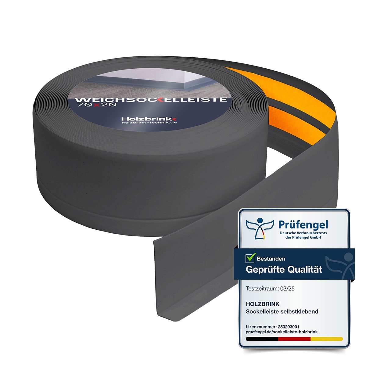 HOLZBRINK Sockelleiste HOLZBRINK selbstklebend PVC 70x20mm, 1 m, L: 100 cm, 1m Rolle, Küchenleiste Abschlussleiste für Badezimmer Farbe: Graphitgrau