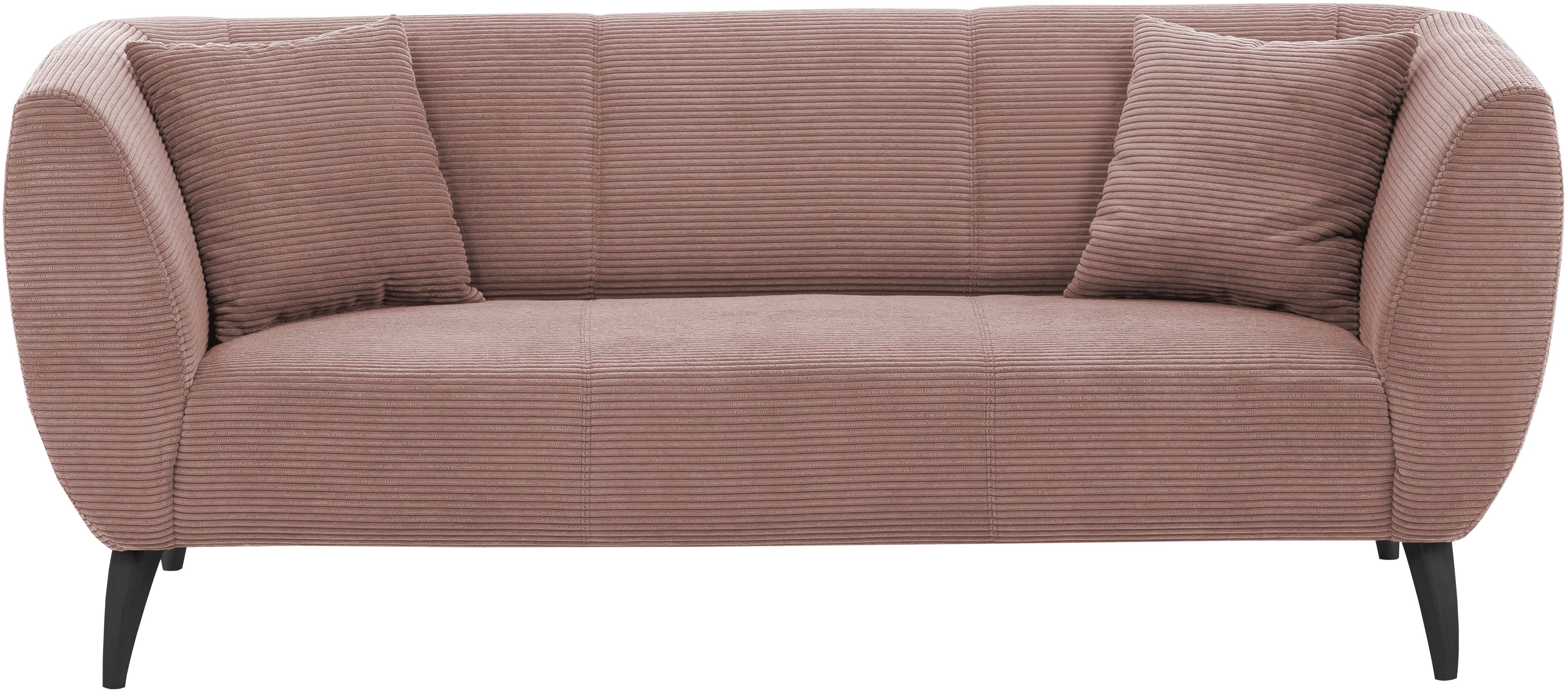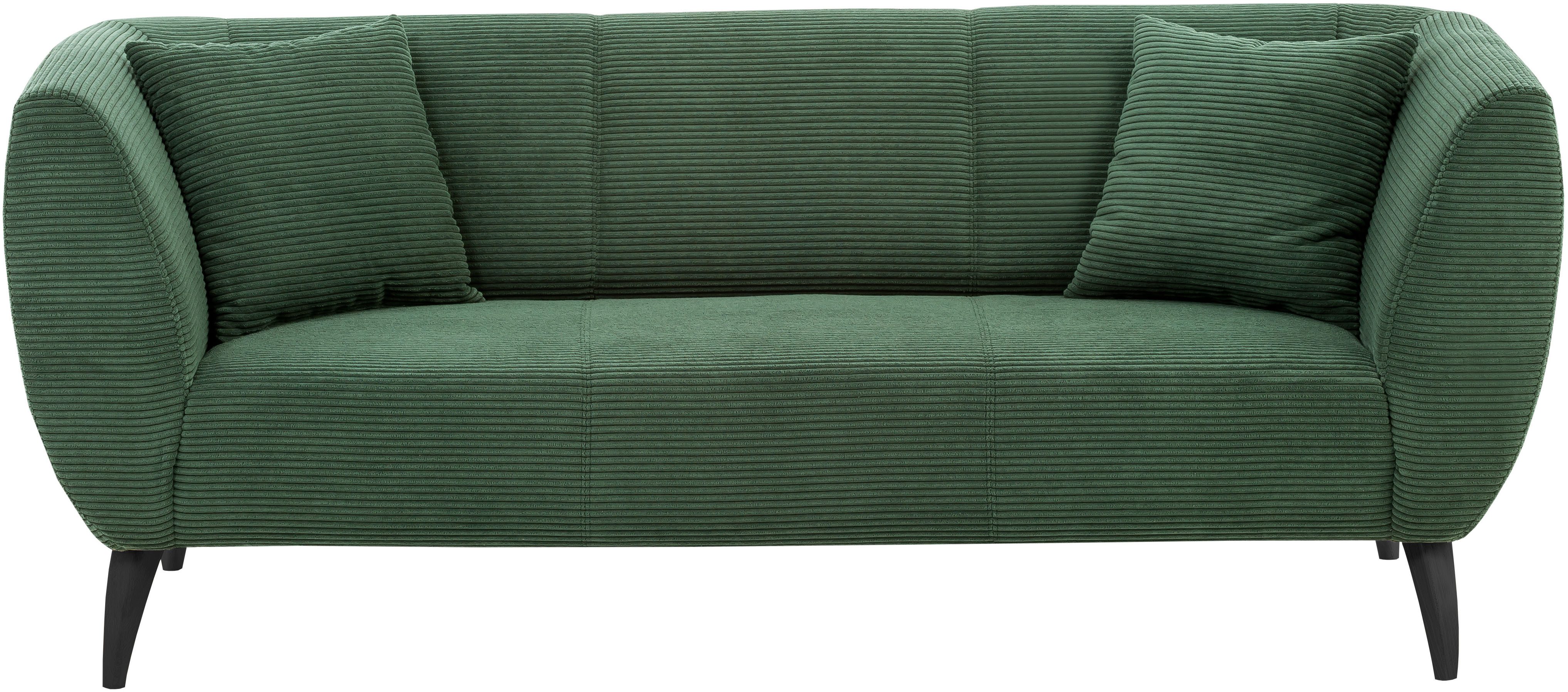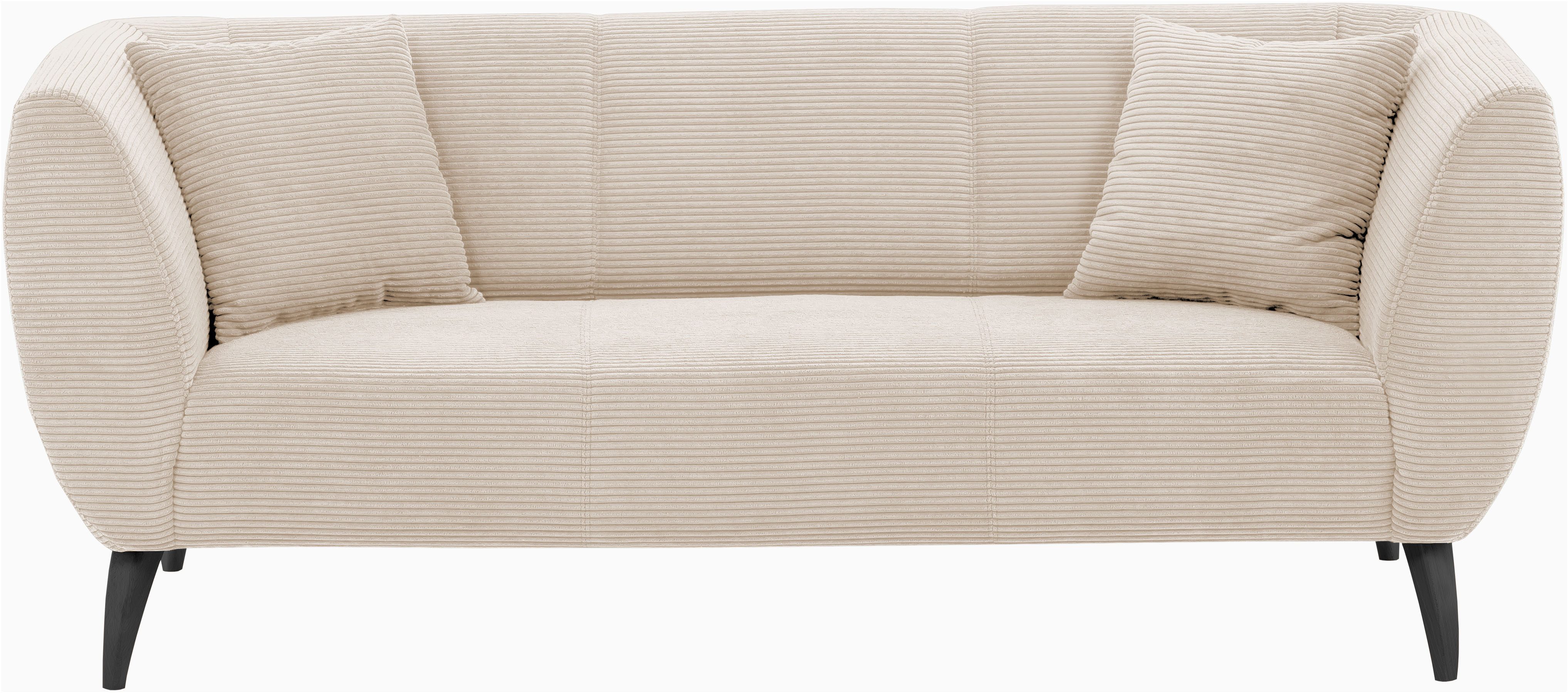 Durch die hochwertige Wellenunterfederung wird die Sitzfläche des 3-Sitzers von INOSIGN gut gefedert und bleibt dauerhaft elastisch. Wovon du auch profitierst, sind die passenden Zierkissen, die das Sofa noch komfortabler machen. Die maximale Belastbarkeit liegt bei einem Gewicht von 240 Kilogramm. Die individuelle Maserung macht die schwarzen Füße aus Holz unverwechselbar.