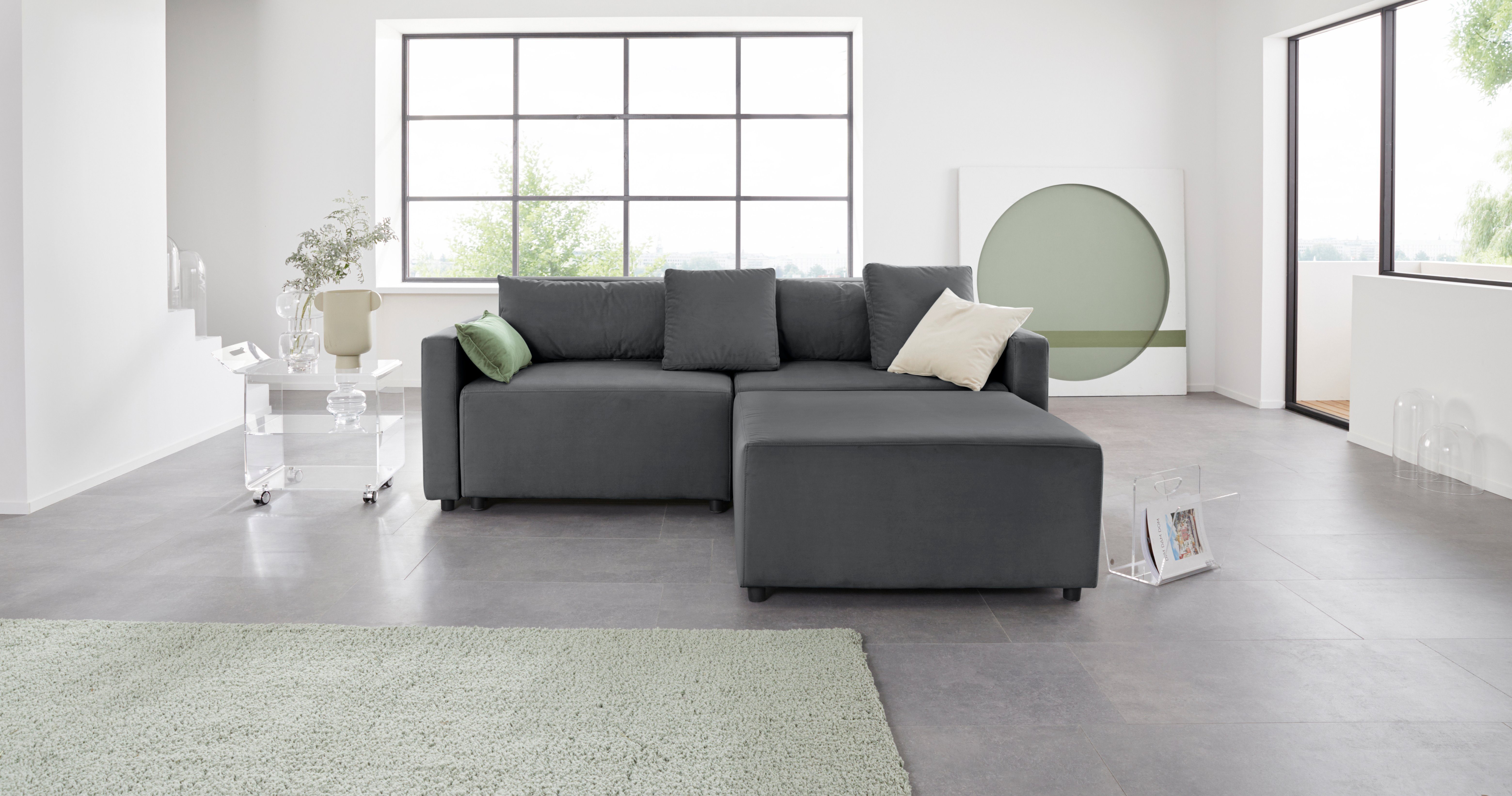 | Wissenswertes | Hocker mittig oder davor stellbar, beide Armlehn-Elemente ausziehbar mit Bettfunktion und Bettkasten Pflegehinweise für Microfaser-Stoffe Zur allgemeinen Pflege reicht es aus, wenn Sie die Oberfläche mit einer weichen Kleiderbürste ab und zu leicht abbürsten oder mit der Polsterdüse absaugen. Flecken sollten Sie grundsätzlich sofort entfernen. Waschen Sie Flecken mit kreisenden Bewegungen und wenig Druck mit einem weißen Baumwolltuch und lauwarmem Wasser großflächig ab. ACHTUNG! Durch zu viel Druck beim Auswaschen können die Farben verblassen! Prüfen Sie vorsorglich an einer versteckt liegenden Stelle, wie sich die Farbgebung des Stoffes verhält. Lassen Sie die feuchten Stellen normal abtrocknen. Verwenden Sie keinen Haartrockner. Ganz hartnäckige Flecken können Sie auch mit einem Polster-/Teppichreiniger auf wasserlöslicher - oder Schaumbasis behandeln. Testen Sie immer zuerst an einer verdeckten Stelle, ob das Reinigungsmittel den Stoff angreift. Pflegehinweise für Strukturstoffe Dieser Bezug zeichnet sich durch sein dezentes Farbenspiel sowie des angenehmen Griffes aus, der durch einen aufwendigen Herstellungsprozess erzielt wird. Zur allgemeinen Pflege reicht es aus, wenn Sie die Oberfläche mit einer weichen Kleiderbürste ab und zu leicht abbürsten oder mit der Polsterdüse absaugen. Um Ziehfäden zu vermeiden, sollten Sie bitte Haustiere, spitze Gegenstände (wie z.B. Schmuck etc.) von Ihrem neuen Möbel fernhalten |