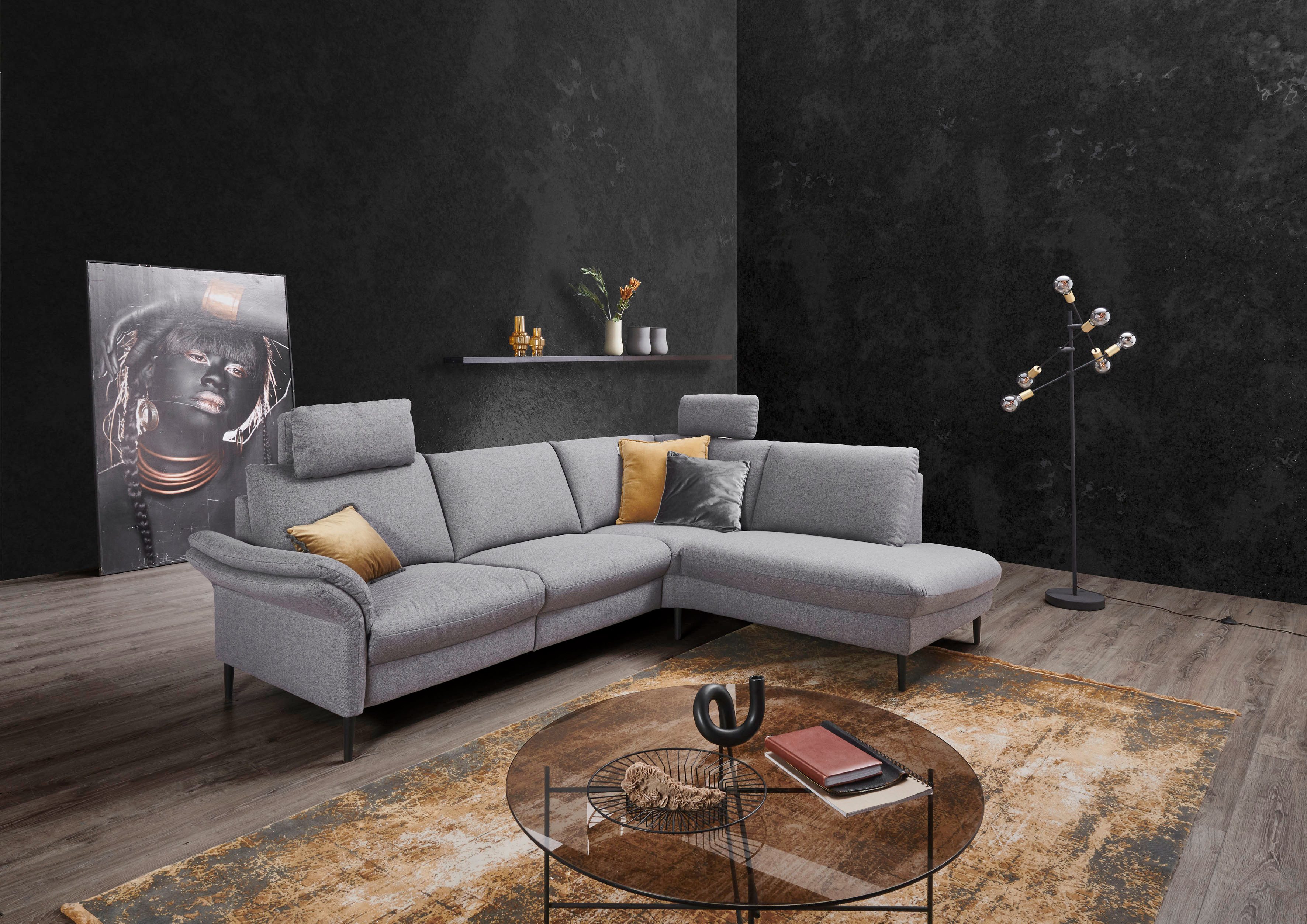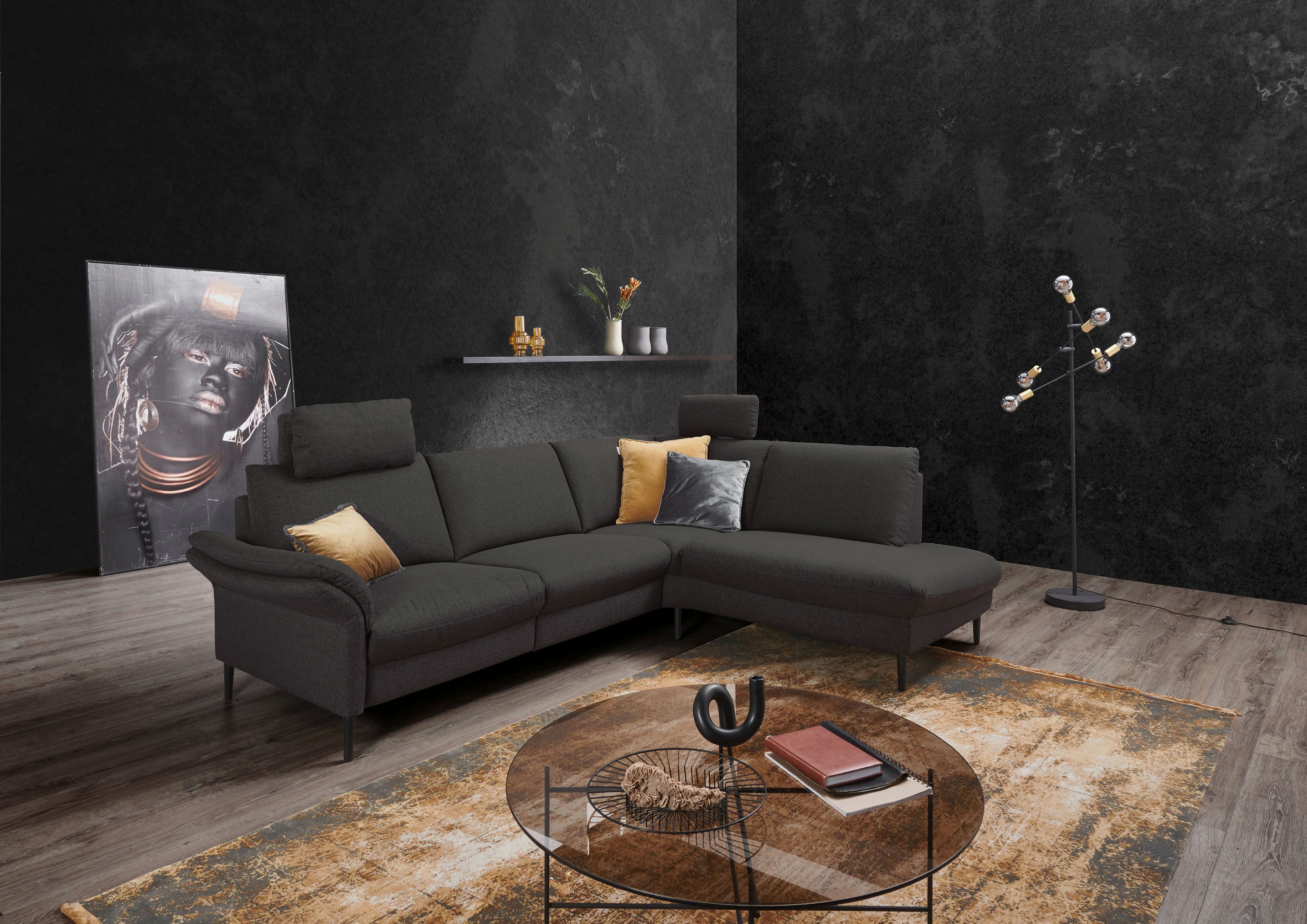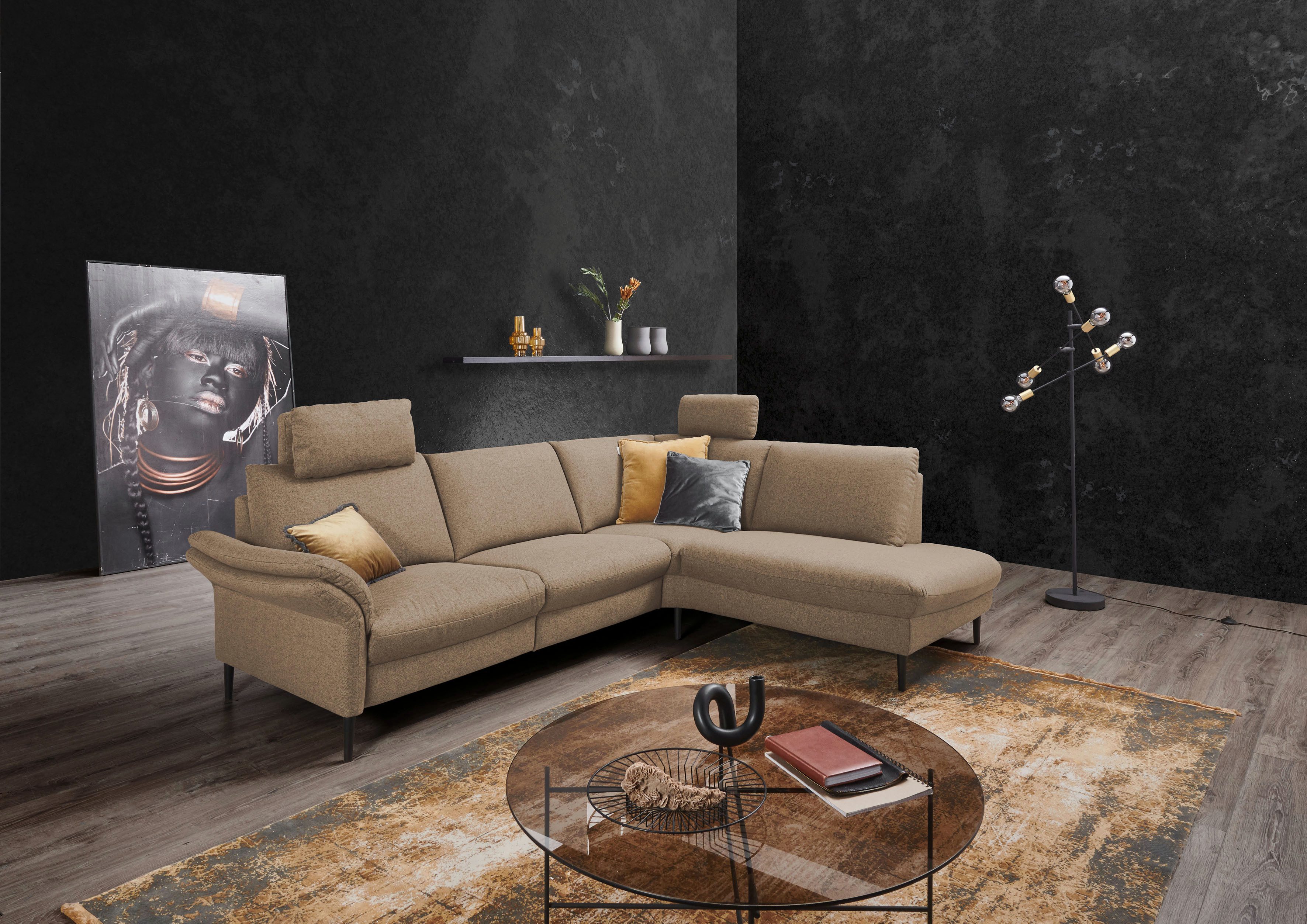 Durch die hochwertige Wellenunterfederung wird die Sitzfläche des Ecksofas »Sarsina: mit Tonnentaschen-Federkern, perfekt zum Entspannen L-Form« von Places of Style gut gefedert und bleibt dauerhaft elastisch. Wovon du auch profitierst, ist die integrierte Kopfstütze, die deinen Nacken beim entspannten Zurücklehnen entlasten soll. Es ist elektrisch verstellbar, sodass du mit der Fernbedienung die Ausrichtung einfach per Knopfdruck anpassen kannst. Beim Ecksofa befindet sich die Ottomane, von vorne betrachtet, rechts. Der Bezug aus Flachgewebe ist mit seiner strapazierfähigen Eigenschaften besonders alltagstauglich. Aus Liebe zum Detail wurde dieses Modell von Hand angefertigt. Für dieses Produkt erhältst du eine Herstellergarantie von 2 Jahren.