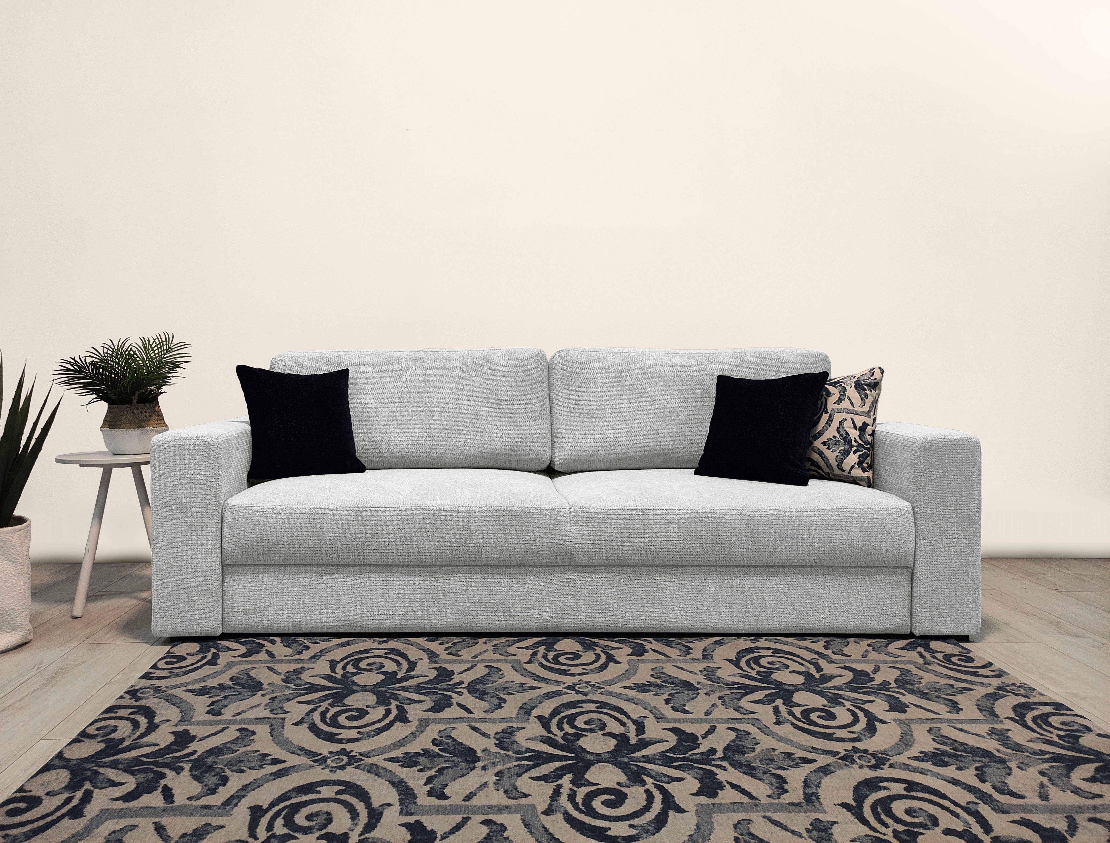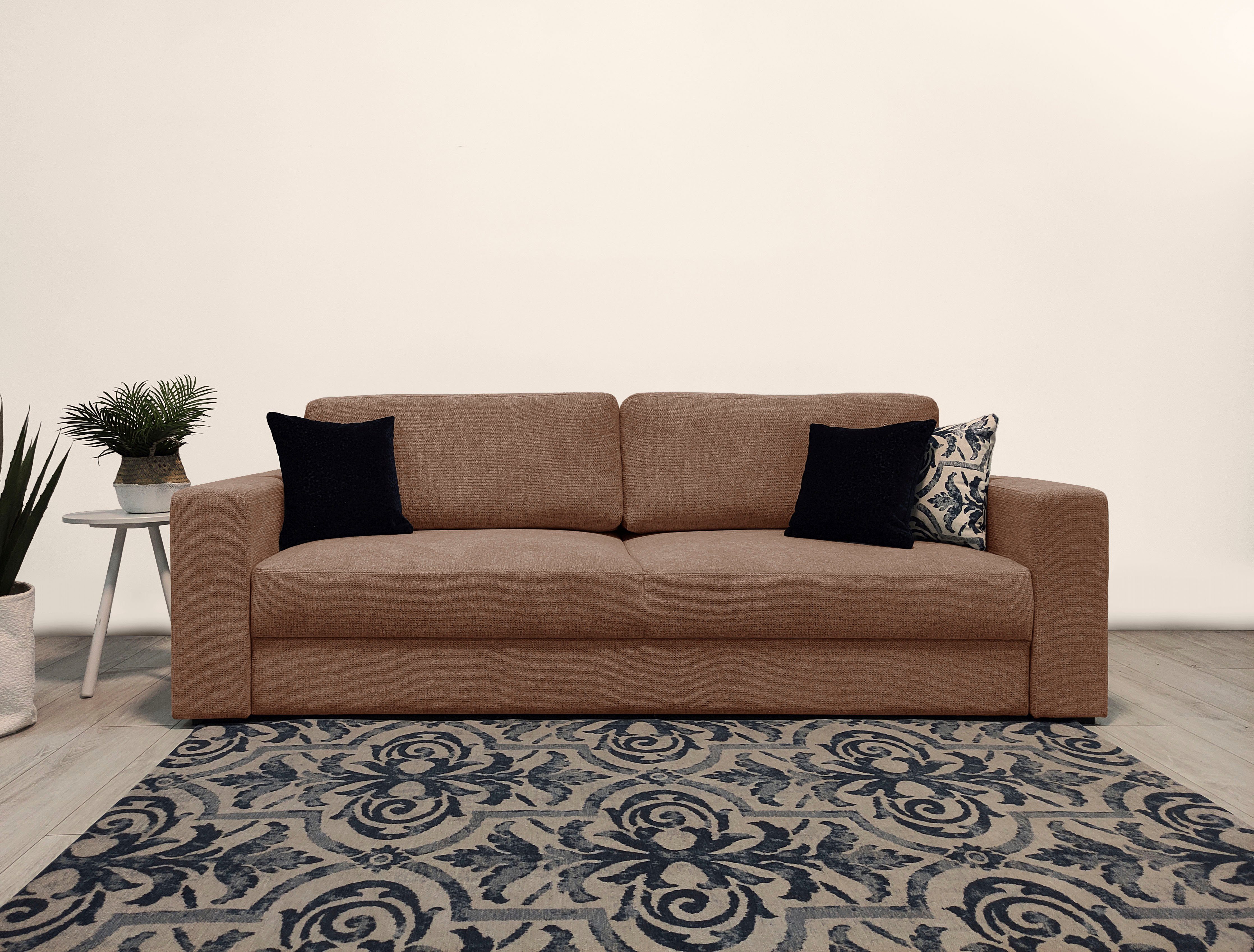 Wenn du Wert auf bequeme und langlebige Sitzmöbel legst, solltest du einen Blick auf dieses Schlafsofa »Calrence« von Home affaire werfen. Er ist mit hochwertigem PUR-Schaumstoff gepolstert. Zudem handelt es sich hierbei um ein echtes Platzwunder, da es mit einer ausziehbaren Liegefläche versehen und somit Schlaf- und Ruhezone in einem ist. Die maximale Belastbarkeit liegt bei einem Gewicht von 270 Kilogramm. Der Bezug aus Chenille überzeugt mit seiner velourartigen und samtig wirkenden Oberfläche.