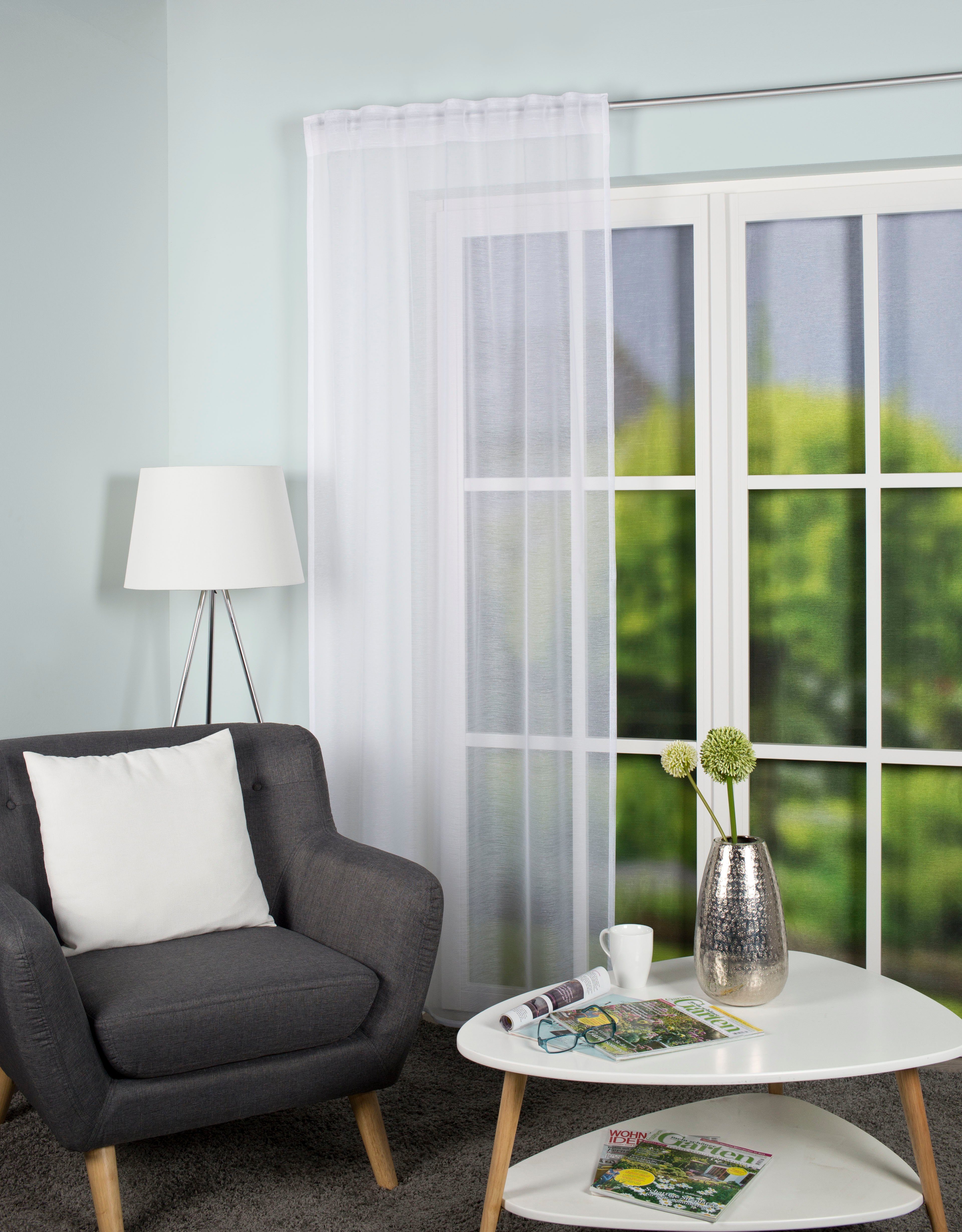 | Hinweis Materialart | Eine Voilequalität bezeichnet ein zartes, luftiges Gewebe, das Lichtmilderung ohne Verdunkeln bietet. Bei farbigen Voiles bestimmen Sie selbst durch die Stärke des Kräuselns den gewünschten Farbeindruck zwischen hell (bei nur leichter Kräuselung) und intensiv farbig (bei stärkerer Kräuselung). Voile eignet sich durch seine variantenreichen Farben und Dessins hervorragend für Freihand-Dekorationen zur individuellen Fenster- und Raumgestaltung. |