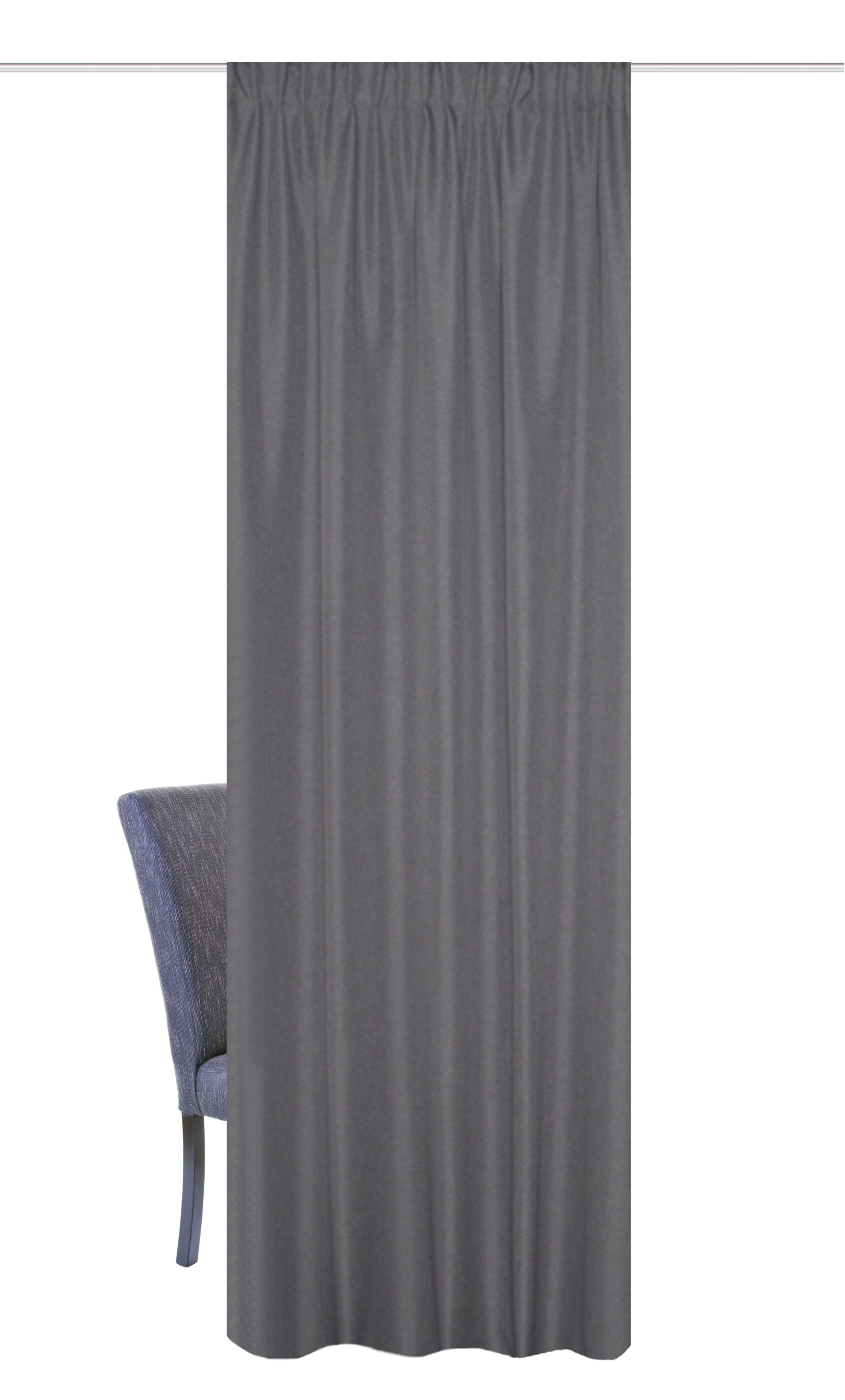 Schützen Sie Ihr Zuhause durch Thermostoffe von HOME BASICS! Moderner Kombibandschal aus hochwertigem Thermo-Stoff mit leichter Struktur in Unifarben. Durch eine spezielle Schicht, bringt der Schal folgende Merkmale mit sich: blickdicht energiesparend kälteabweisend hitzeabweisend An das obere Ende des Vorhanges wurde ein Multifunktionsband angenäht, dass eine Aufhängung an Ihre Gardinenstange (dank verdeckter Schlaufen) und eine Aufhängung an Ihre Gardinenschiene (mittels Gardinengleiter - nicht im Lieferumfang) ermöglicht. An der Seite und am unteren Ende des schweren Vorhanges wurde der Stoff sauber gesäumt. Dank der unterschiedlichen Höhen eignet sich der Thermostoff für viele Fenster- und Türengrößen. Ist die Gardine zu lang kann Sie, mit dem mit eingepacktem Bügelband, gekürzt werden, ohne Nähen. Einfach falten und aufbügeln. Um optimale Ergebnisse zu erzielen, empfehlen wir den Vorhang an den Seiten des Fensters überstehen zu lassen. Die angegebenen Stoffangaben sind Stoffmaße. Das oben angenähte Multifunktionsband rafft den Stoff auf eine Dekorationsbreite von ca. 65cm - 100 cm. Der gewebte Stoff hat Uni-Charakter und eine feine Struktur und ist aus 100% Polyester. Auch die Pflege gestaltet sich sehr einfach: Der Vorhang lässt sich bei 30°C im Schonwaschgang waschen und bei 1 Punkt mäßig heiß bügeln. Sie können den Vorhang tropfnass aufhängen. Nicht im Trommeltrockner trocknen, nicht bleichen und nicht chloren. Quadratmetergewicht: ca. 285 gr. Lieferumfang: 1 FERTIGSCHAL THERMOSTOFF inkl. 1 Bügelband mit Montageanleitung