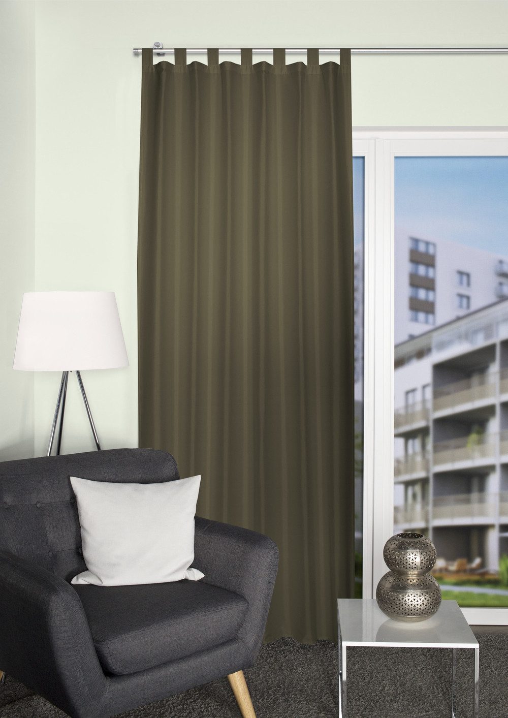 Der Vorhang "FERSKEN" ist ein Schlaufenschal aus Dekostoff-Soft, der durch seine blickdichte Eigenschaft für eine angenehme Privatsphäre sorgt. Der Abschluss des Vorhangs ist sauber gesäumt und verleiht ihm dadurch ein hochwertiges Aussehen. Die schlichte uni-Farbe des Vorhangs lässt sich wunderbar in jeden Einrichtungsstil integrieren. Die Schlaufenaufhängung ermöglicht eine schnelle und unkomplizierte Montage an der Gardinenstange. Hergestellt aus Polyester, ist der Vorhang pflegeleicht und langlebig. Mit dem Vorhang "FERSKEN" schaffen Sie eine gemütliche Atmosphäre in Ihrem Zuhause und können sich auf einen zuverlässigen Sichtschutz verlassen.