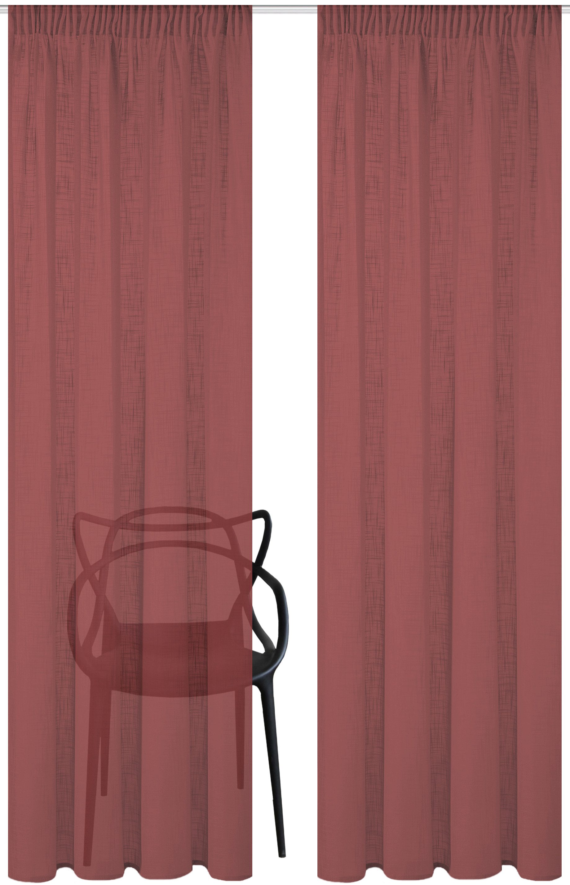 2er Pack - "SOFTY"! Neuer Look für Ihre Fenster: Mit ihrem unifarbenen Design fügt sich die Gardine "SOFTY" von der Marke HOMEbasics harmonisch auf Ihre vorhanden Einrichtung ein. Der Fertigschal ist in mehreren attraktiven Farbvarianten verfügbar. Mit seiner halbtransparenten Optik aus Leinenstruktur, sorgt er für angenehme Lichtverhältnisse in Ihrem Raum. Aufhängung ist mittels Band an der Gardinenschiene oder mit Hilfe verdeckten Schlaufen an der Gardinenstange möglich. Der Schal besteht aus 100% Polyester und ist pflegeleicht. Das halbtransparente Material lässt sich bei bis zu 30 °C im Schonwaschgang reinigen. Inhalt: 2x Fertigschal