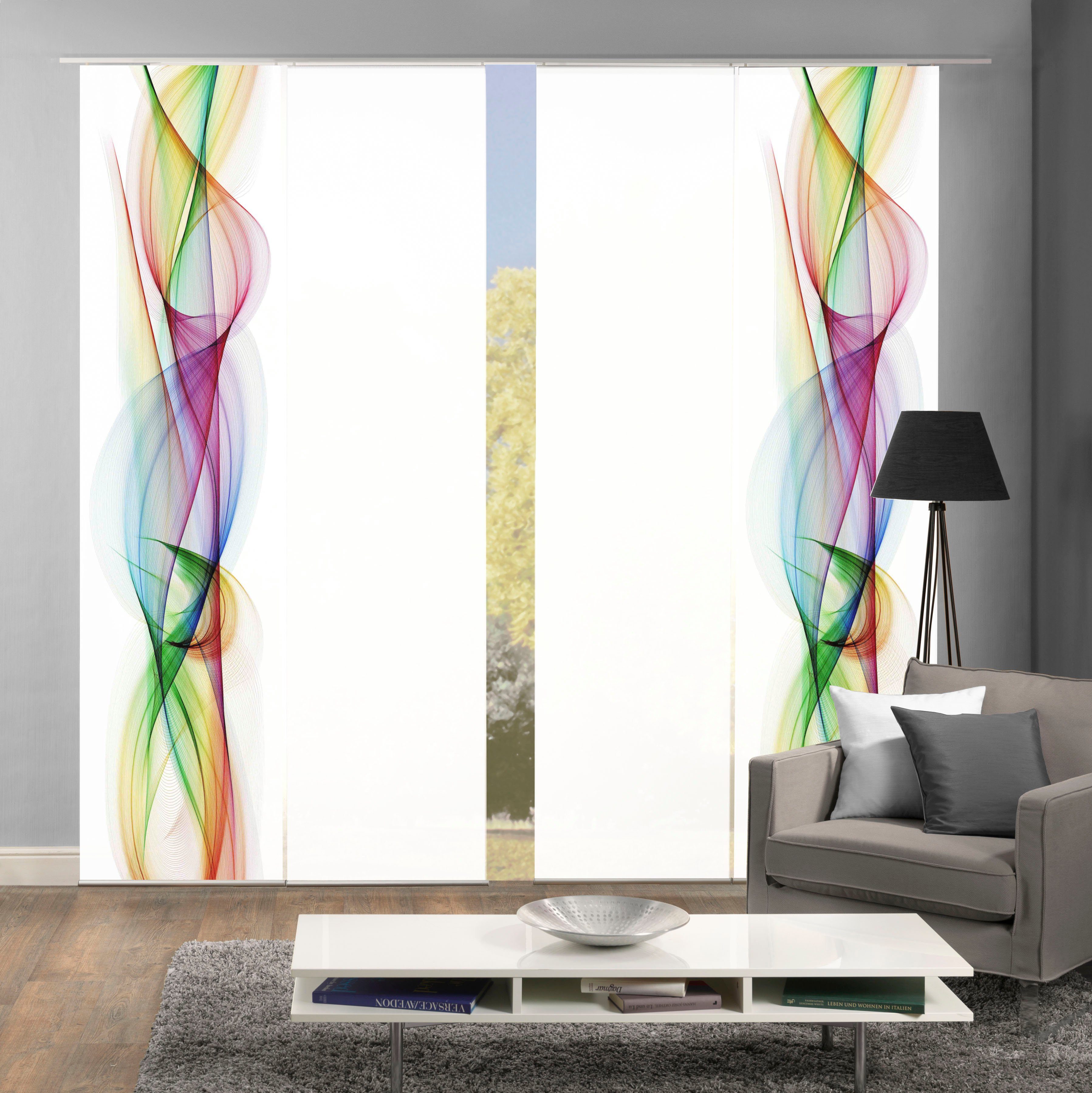 4ER SET DIGITALDRUCK DEKOSTOFF-SEIDENOPTIK bestehend aus 2 digitalbedruckten Schiebevorhängen aus blickdichtem Dekostoff-Seidenoptik sowie 2 blickdichten Unis aus Dekostoff-Seidenoptik. Die Schiebevorhänge werden inkl. Zubehör geliefert: Oben zur Befestigung einen Kunststoff-Paneelwagen inkl. Röllchen und X-Gleiter (auch IKEA) sowie als Abschluss eine Aluminium-Klemmleiste als Beschwerungselement. Jeder einzelne Schiebevorhang ist 245 cm hoch und kann auf jede beliebige Höhe gekürzt werden. Dazu einfach die Klemmleiste abclipsen, auf der entsprechenden Höhe gerade abschneiden und Klemmleiste wieder anbringen. Stoff aus 100% Polyester. Waschbar bei 30°C - Schonwaschgang - Zubehör dazu einfach abmachen - nicht im Trockner trocknen - keine chemische Reinigung möglich