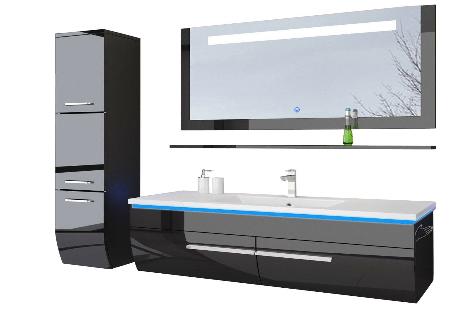 Sofort lieferbar Waschbecken – Unterschrank ist vormontiert Voll lackiert Softclose LED