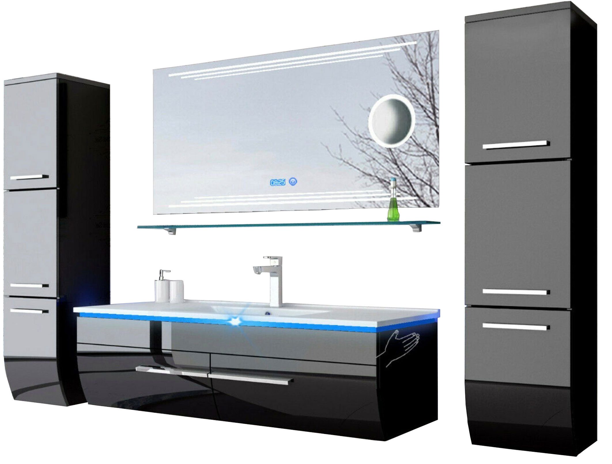 Badmöbelset 6 Teilig Hochglanz Lackiert Fronten und Seiten Schwarz.