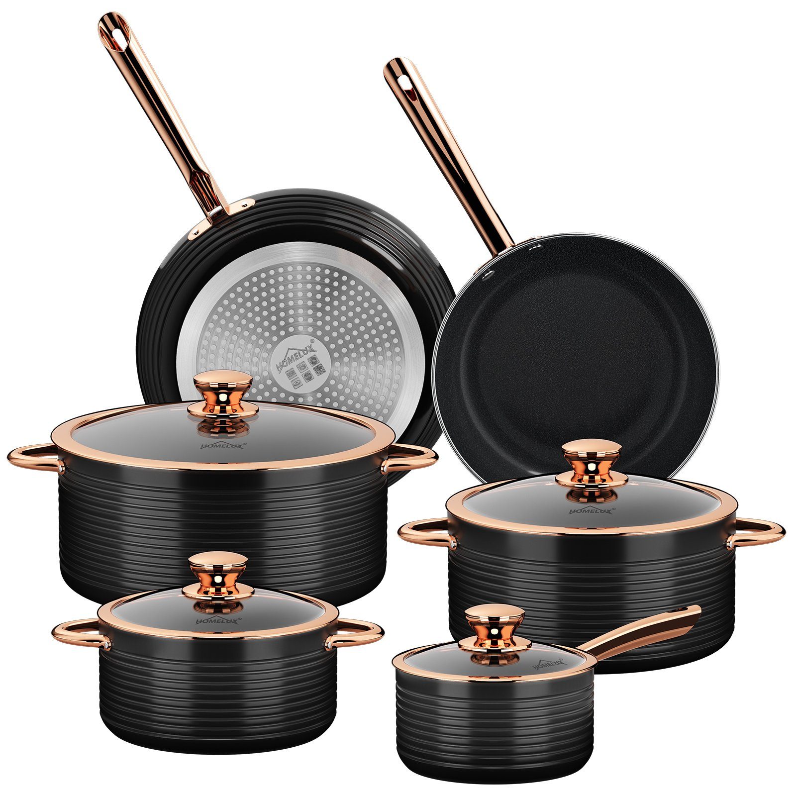 HOMELUX Topf-Set Kochgeschirr-Set, 10tlg Induktions Kochtopfset mit Deckel, Aluminium (Stilvolles Rose Gold, 10-tlg., Kochtopf 20/24/28 + Stieltopf 16 + Pfanne 24/28), induktionsgeeignet