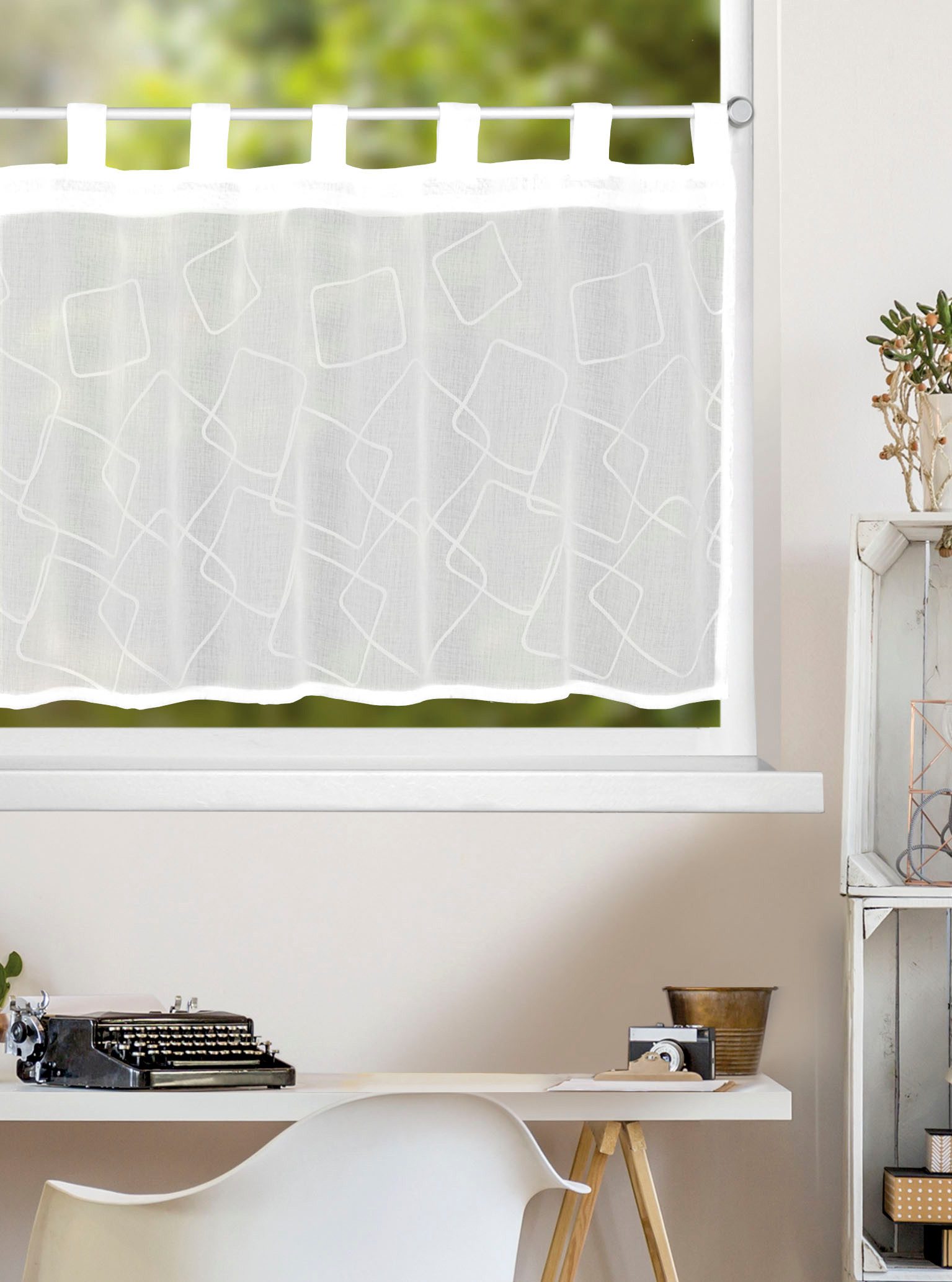 Aufhängung erfolgt mittels Schlaufen an der Gardinenstange.