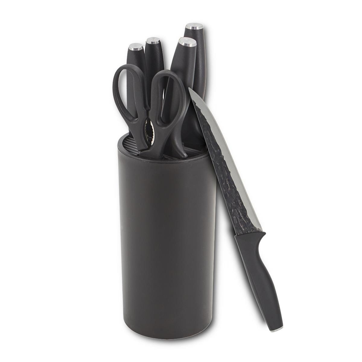Das Set enthält einen praktischen Messerblock aus Kunststoff, der nicht nur leicht und platzsparend ist, sondern auch eine sichere Aufbewahrung für Ihre Messer gewährleistet. Mit seinem schlanken Design passt er mühelos in jede Küche und sorgt für einen schnellen und einfachen Zugriff auf Ihre Werkzeuge.