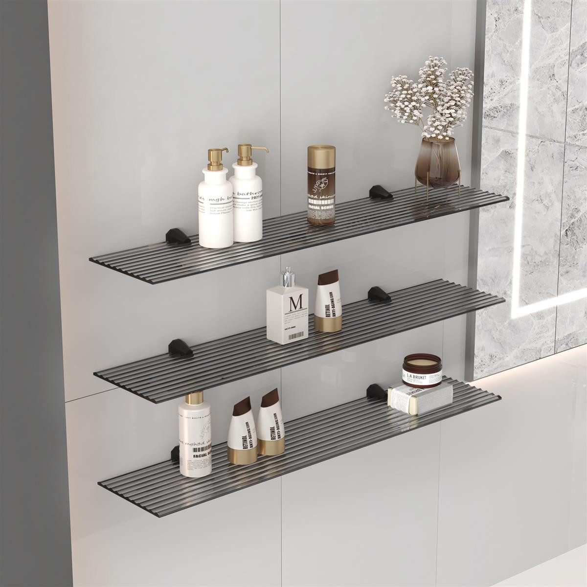 Dieses moderne Wandregal aus geriffeltem Grauglas verleiht Ihrem Raum eine stilvolle, strukturierte Optik. Die markante Riffelfläche sorgt für dezente Lichtbrechung und schafft ein hochwertiges Ambiente – ideal für zeitgemäßes Wohnen. Gefertigt aus 6 mm starkem ESG-Sicherheitsglas mit Facettenschliff und robuster Halterung – perfekt als Ablage für Kosmetik, Gewürze oder Dekoration.