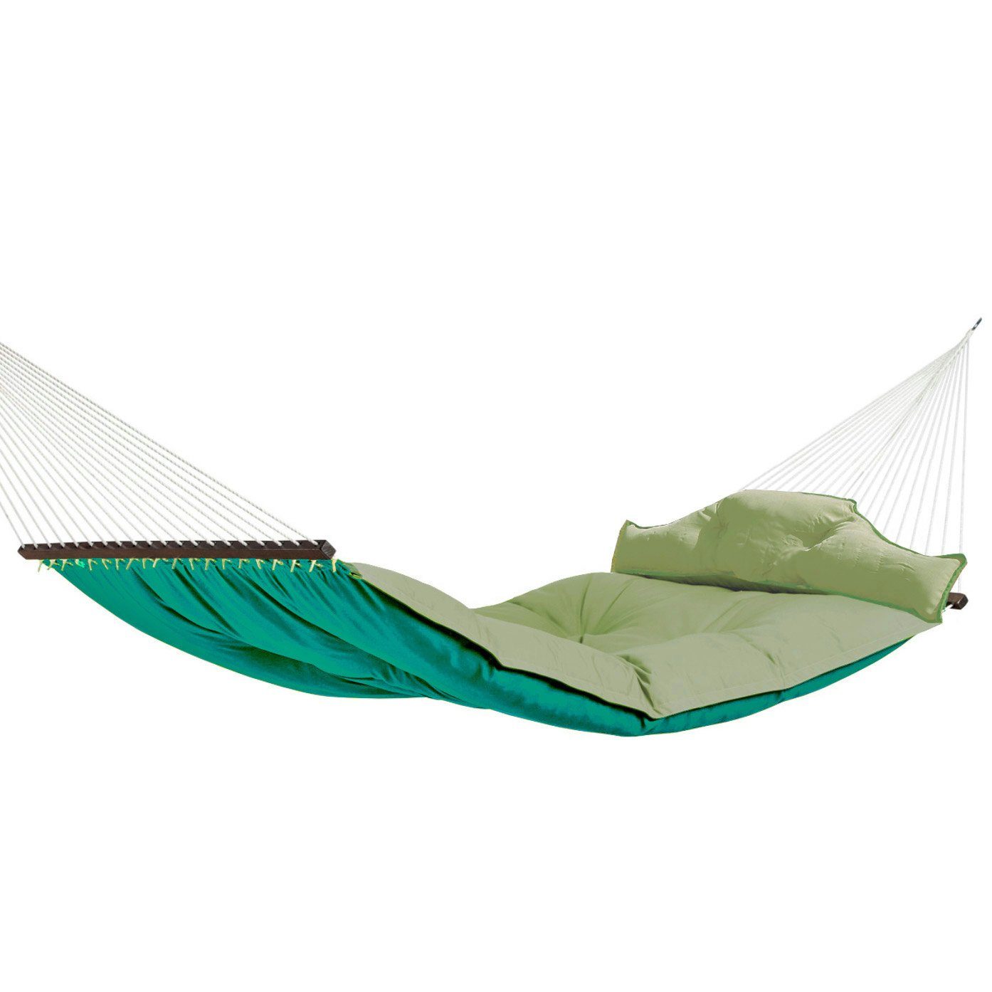 Diese exklusive, gefütterte Hängematte mit ihrem edlen Design ist ein wahres Meisterwerk. Hergestellt aus licht- und farbechten Olefin-Fasern, ist sie schweiß- und schmutzresistent sowie äußerst witterungsbeständig. Dank ihrer Abriebfestigkeit behält sie lange Zeit ihr makelloses Aussehen.