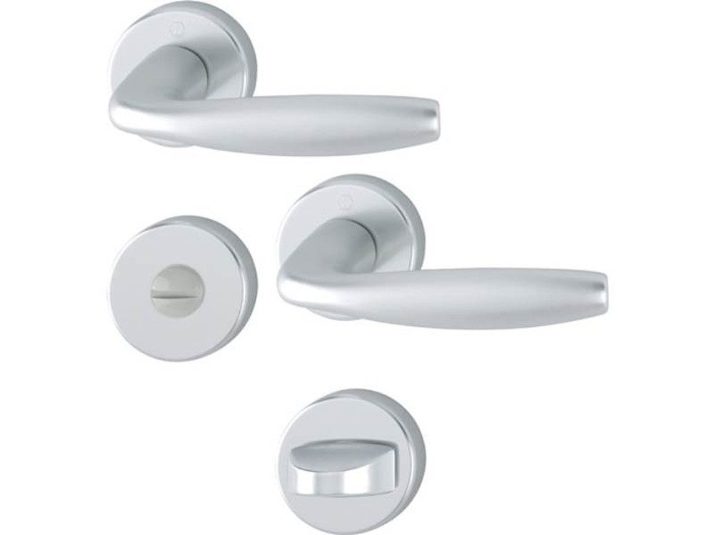 Rosettengrt.NY 1810/42KV/42KVS Alu.F1 rd.SK/OL DIN L/R D/D HOPPE Innentür-Rosetten-Garnitur · geprüft nach DIN EN 1906 (Gebrauchs-Kategorie Klasse 3) · Türgriffe mit Schnellstift-Verbindung (mit 8 mm Vollstift) · Rosetten mit Kunststoff-Unterkonstruktion · Rückholfeder und Stütznocken · Befestigung: verdeckt, durchgehe
