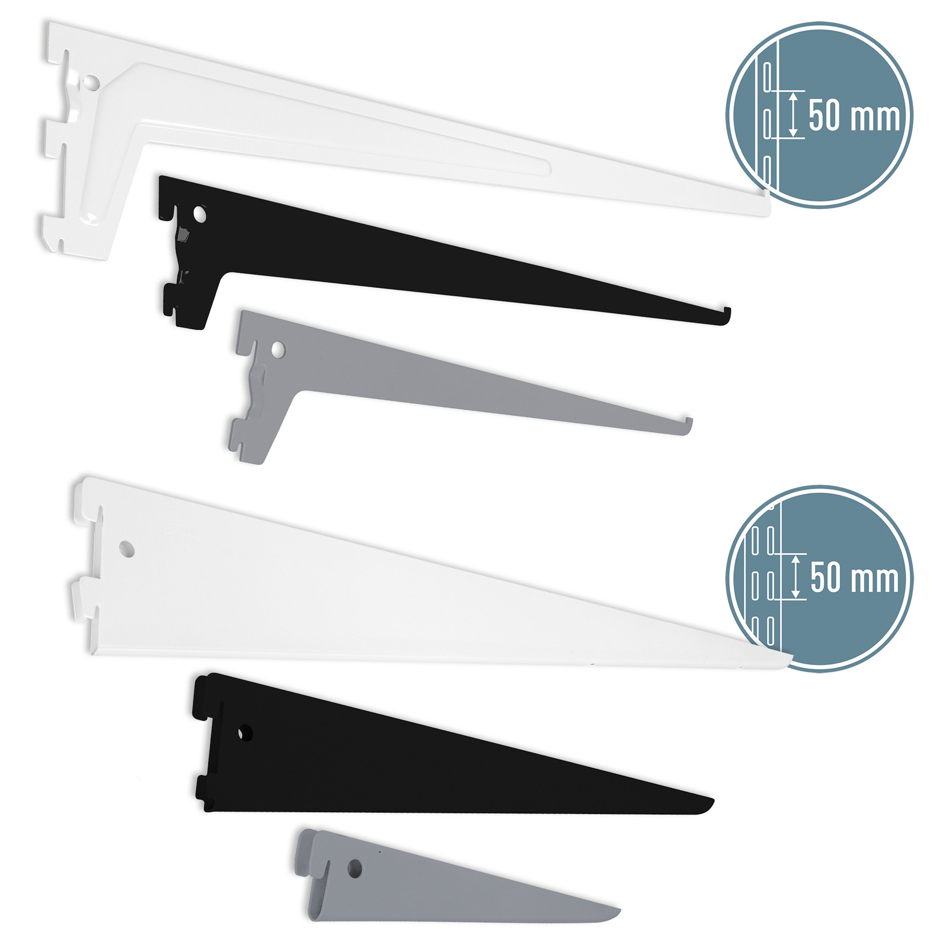 Die Regalträger sind in den folgenden 3 Farben erhältlich. Schwarz, Weiß oder Grau.