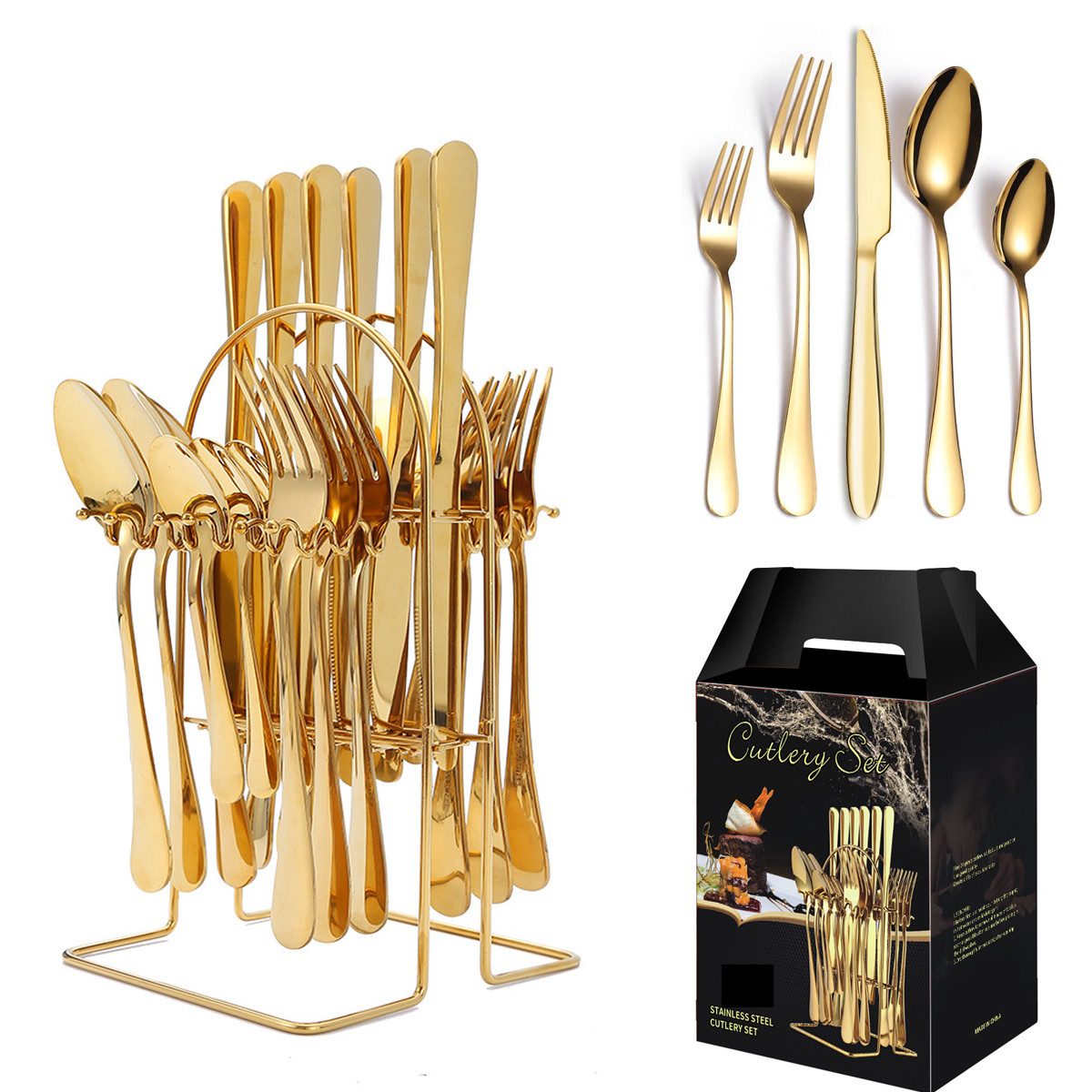 Perfekte Geschenk Das besteckset mit Ständer wird in einer schön verpackten Schachtel geliefert, die sich perfekt als Geschenk für Catering-Events, Geburtstagsfeiern, Muttertag, Valentinstag, Familienfeiern, Hochzeiten und andere Feste eignet. Das Geschirr hat ein modernes, schlichtes und elegantes Design, ideal für alltägliche Familienessen.