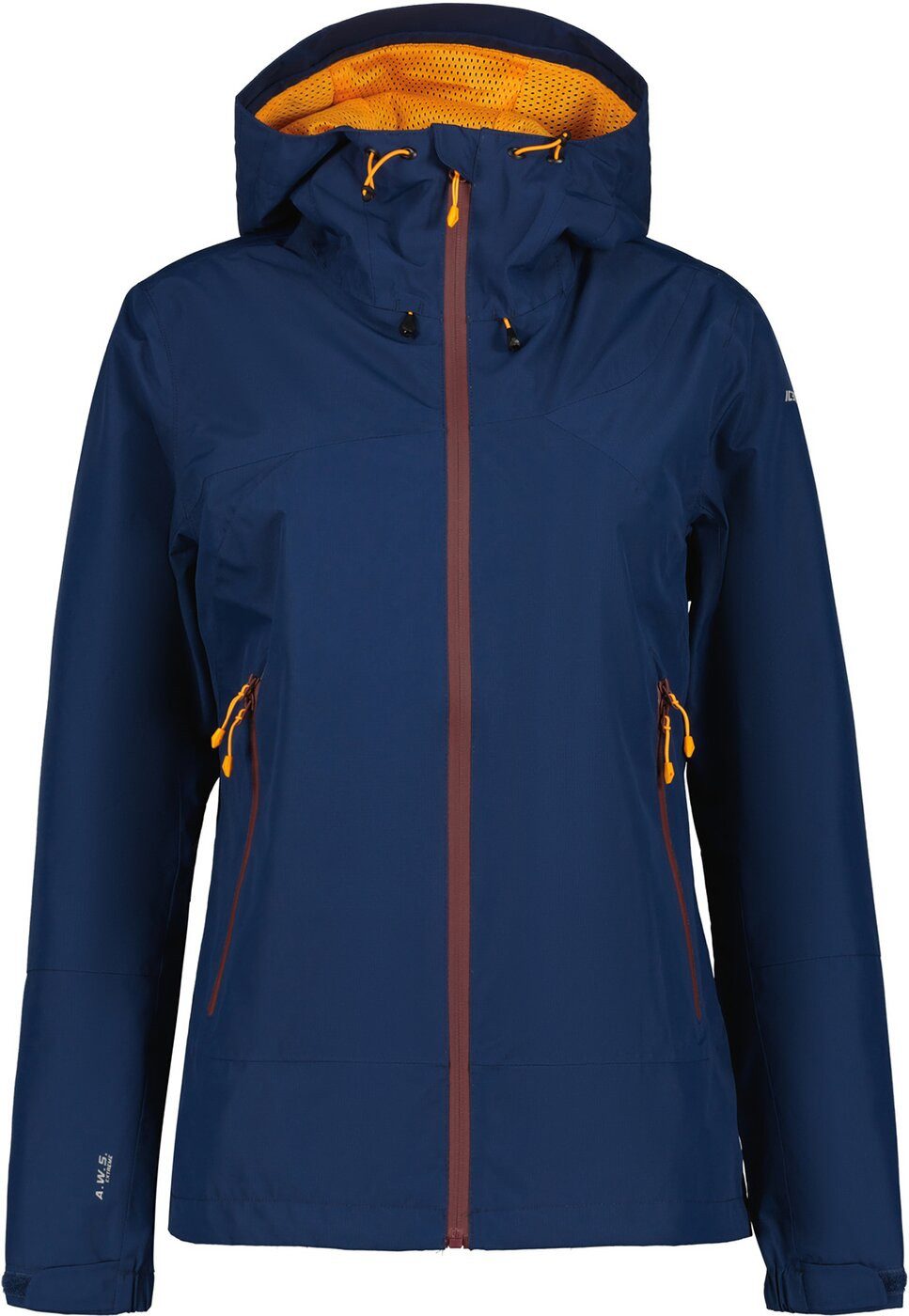 Icepeak Jacke für damen. Normale Passform. Vorgeformte Ellbogen. Regulierbare Kapuze. Zweifach regulierbare Kapuze. Feste Kapuze. Ärmelbündchen durch Klettband verstellbar. Zwei Reißverschlusstaschen vorne. Reißverschlusstasche innen. Windleiste. Reißverschluss mit Kinnschutz. Regulierbarer Saum. Alle Reißverschlüsse wasserabweisend. Geformter Saum. Logo-Aufdruck. Wassersäule 10 000 mm. Atmungsaktivität 10 000 g\m2\24h. Die Gewebeoberfläche ist wasserabweisend imprägniert. Dieses A.W.S. EXTREME-Produkt erfüllt die Anforderungen aktiver Outdoor-Leute auch unter extremen Bedingungen. Strukturdetails und schützende Materialien machen das Produkt funktional in jeder Situation, egal bei welchem Wetter. Alle Nähte sind verschweißt worden, um das Produkt absolut wasserdicht zu machen. PFC-freie Imprägnierung. Hergestellt aus einem 2-Lagenmaterial, bei dem eine wasserdichte Membran mit einem funktionellen Material verbunden worden ist.