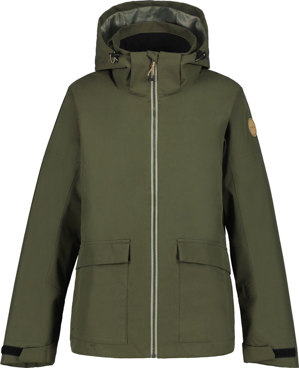 Icepeak Jacke für damen. Lässige Passform. Lange Passform. Verstellbare und abnehmbare Kapuze. Verstellbare Ärmelbündchen. Zwei Reißverschlusstaschen vorne. Innentasche. Regulierbarer Saum. Wassersäule 10 000 mm. Atmungsaktivität 5 000 g\m2\24h. Funktionalität und Komfort wurde besondere Beachtung beim Design-Prozess dieses A.W.S. ACTIVE-Produkts geschenkt, weswegen es für intensive wie auch für entspannte Aktivitäten geeignet ist. Enthält recyceltes Material. Alle Nähte sind verschweißt worden, um das Produkt absolut wasserdicht zu machen. Hergestellt aus einem 2-Lagenmaterial, bei dem eine wasserdichte Membran mit einem funktionellen Material verbunden worden ist. Die Gewebeoberfläche ist wasserabweisend imprägniert.