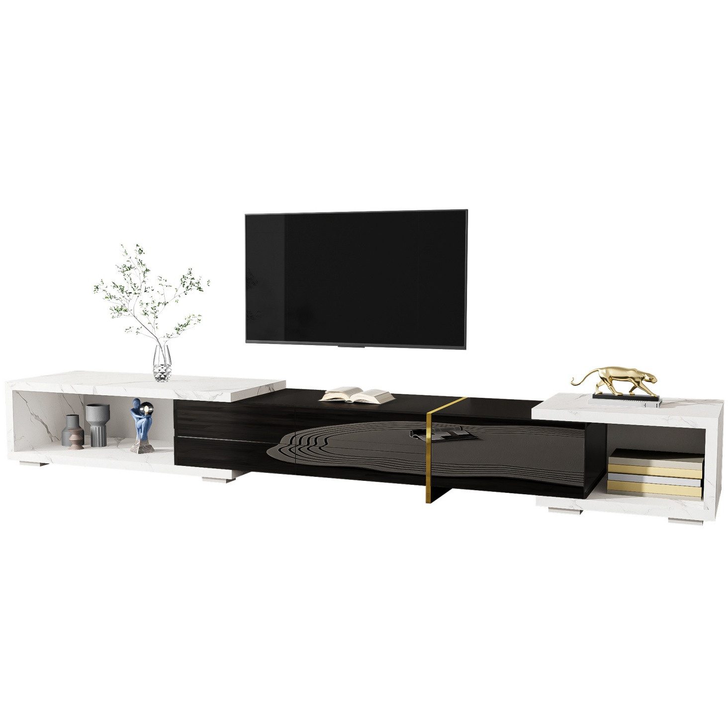Die Hochglanz-Matt-Kombination widersteht selbst in Haushalten mit Kindern oder Haustieren Kratzern und Fingerabdrücken. Die marmorierte Oberfläche mit 0,8mm Schutzfilm und goldenen Metallfüßen schafft eine Galerie-Atmosphäre - perfekt zur Inszenierung Ihrer Premium-Elektronik.