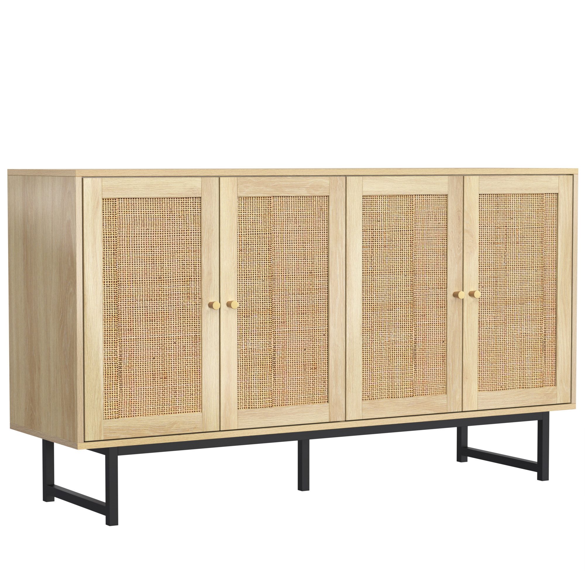 Dieses Sideboard im modernen Holzdesign mit echtem Rattangeflecht und goldfarbenen Griffen fügt sich perfekt in Ihr Wohnzimmer ein. Der großzügige Stauraum hinter den 4 Türen bietet Platz für Geschirr, Bücher oder Dekoration, sodass Ihr Raum stets aufgeräumt und stilvoll bleibt.