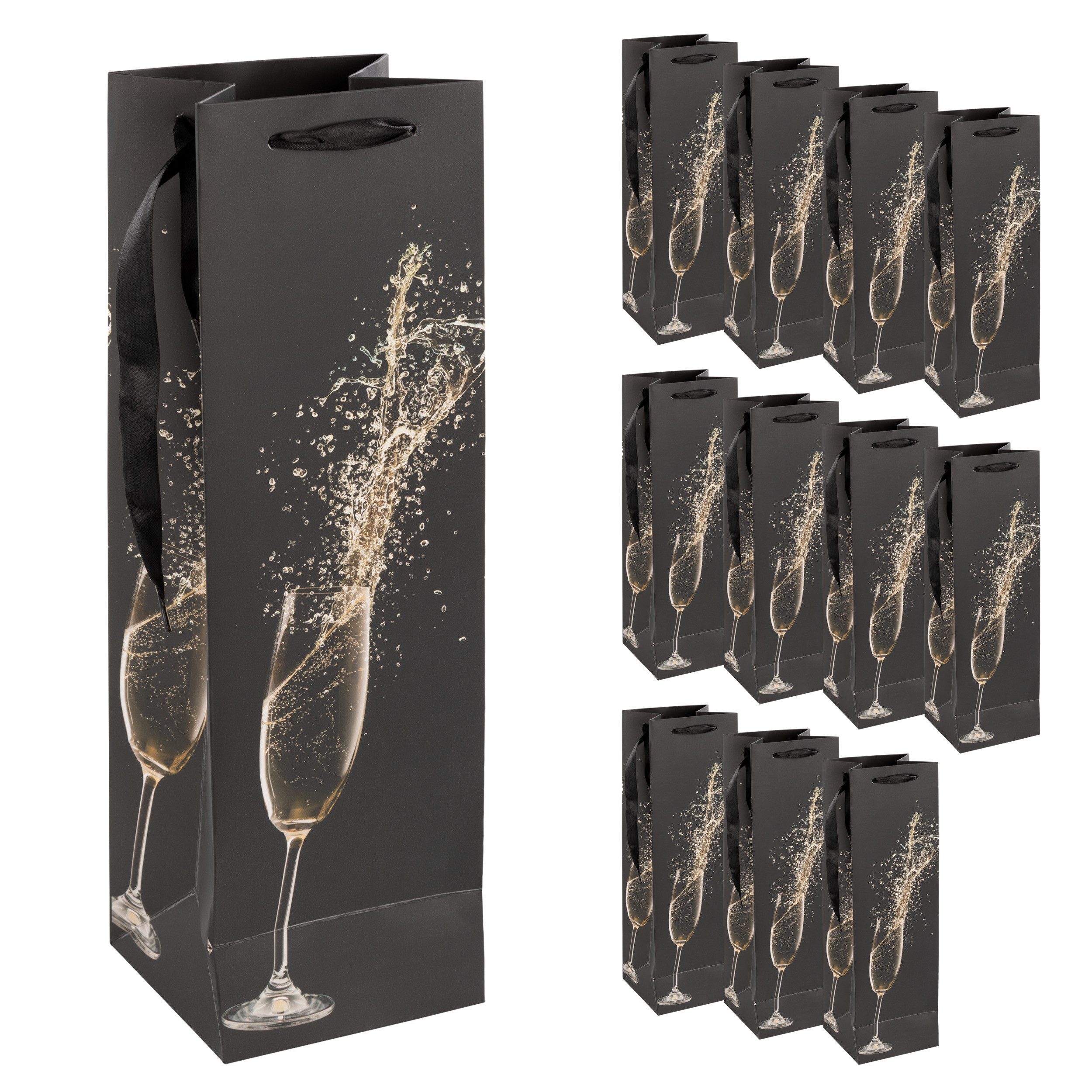 Idena Geschenkpapier Idena Bundle Flaschentaschen Sektglas schwarz 39x12x10cm 12 Stück