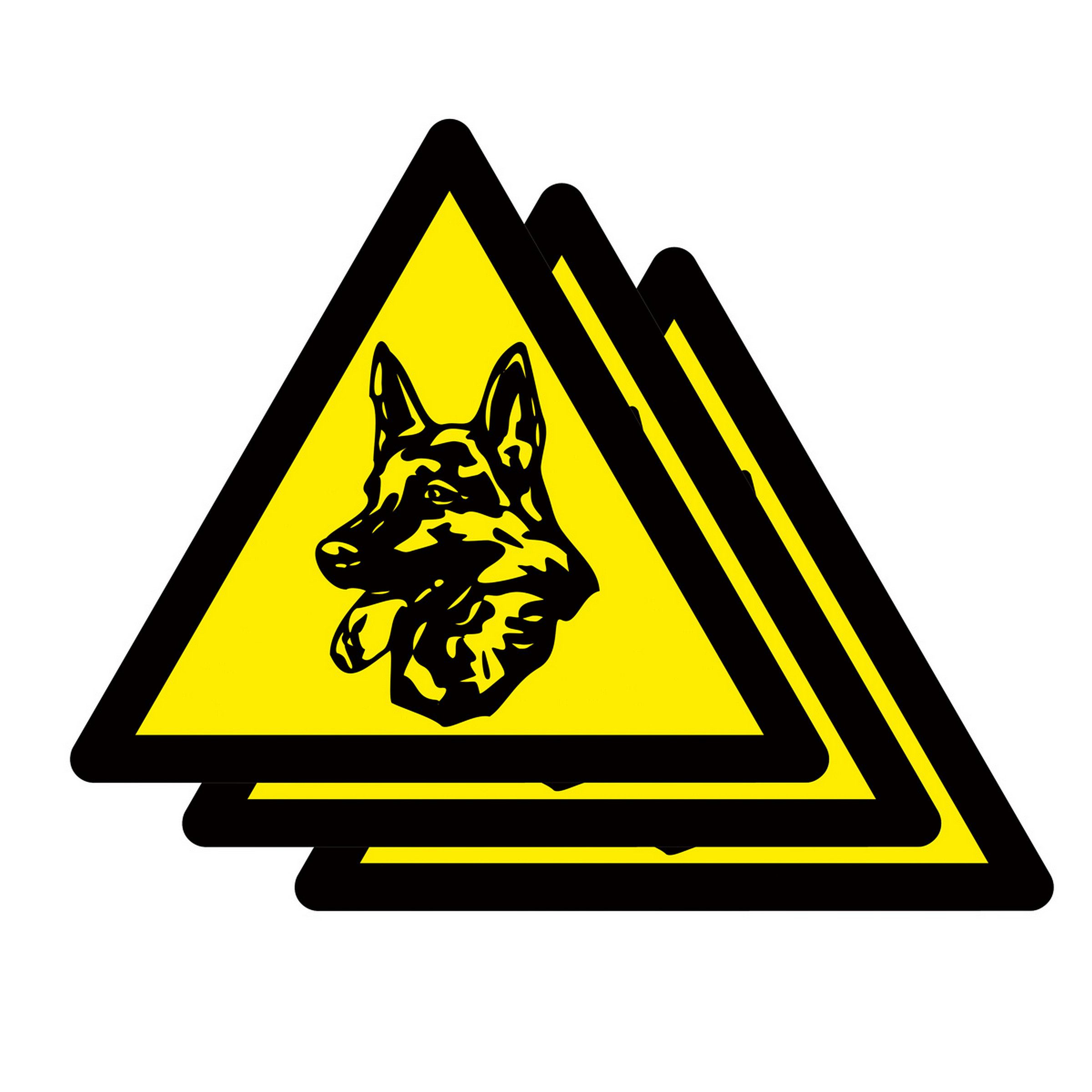 Warnaufkleber > Wachhund <, Dreiecksform: Abmessungen (BxH): 90 x 80mm. Selbstklebende PE-Folie. 3er Packung.