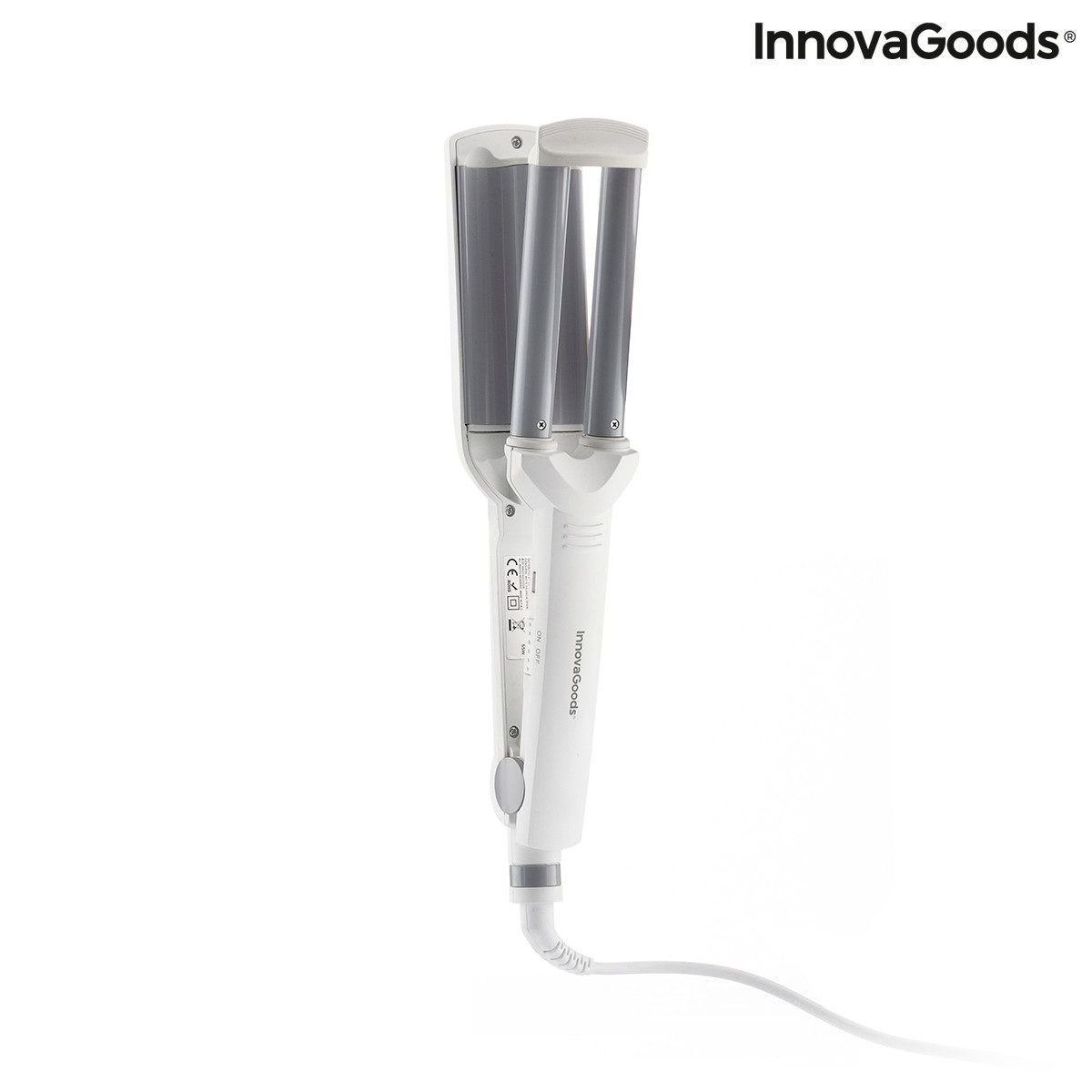 InnovaGoods macht es Ihnen leicht, Ihre persönliche Pflege ohne Ausreden in den Vordergrund zu stellen, da sie Ihnen Schönheits-, Entspannungs- und Wellnessneuheiten bietet! Lockenstab aus Keramik Wavio InnovaGoods 55 W Wellness Beauty ist ein gutes Beispiel dafür! Entdecken Sie eine breite Palette von Qualitätsprodukten, die sich durch Funktionalität, Effizienz und innovatives Design auszeichnen.Ein Lockenstab mit innovativem Design mit drei Stäben, ideal zum einfachen und bequemen Locken der Haare, für ein optimales und professionelles Ergebnis. In Sekundenschnelle können Sie damit breite, starke, definierte Locken für einen besonderen Anlass oder weiche Wellen für einen natürlichen Alltagslook erzielen. Die PTC-Technologie ermöglicht ein schnelles Aufheizen (in nur 2 Minuten wird die maximale Temperatur erreicht) und sorgt für eine lange Lebensdauer. Er verfügt über 3D-Keramikplatten, die das Haar nicht beschädigen und weniger Reibung zulassen, wodurch Sie weniger hängenbleiben und ziehen müssen. Die Wärme wird gleichmäßig mit einer konstanten Temperatur (200ºC) verteilt, was das Haar optimal schützt. Das Kabel ist um 360º drehbar und extra lang, mit einer Länge von 180cm, für eine einfache Handhabung. Er besitzt eine Ein/Aus-Taste und eine LED-Betriebsanzeige. Dieser Lockenstab hat eine Leistung von 55 W, ist leicht und kompakt und wird mit einer Bedienungsanleitung geliefert.
