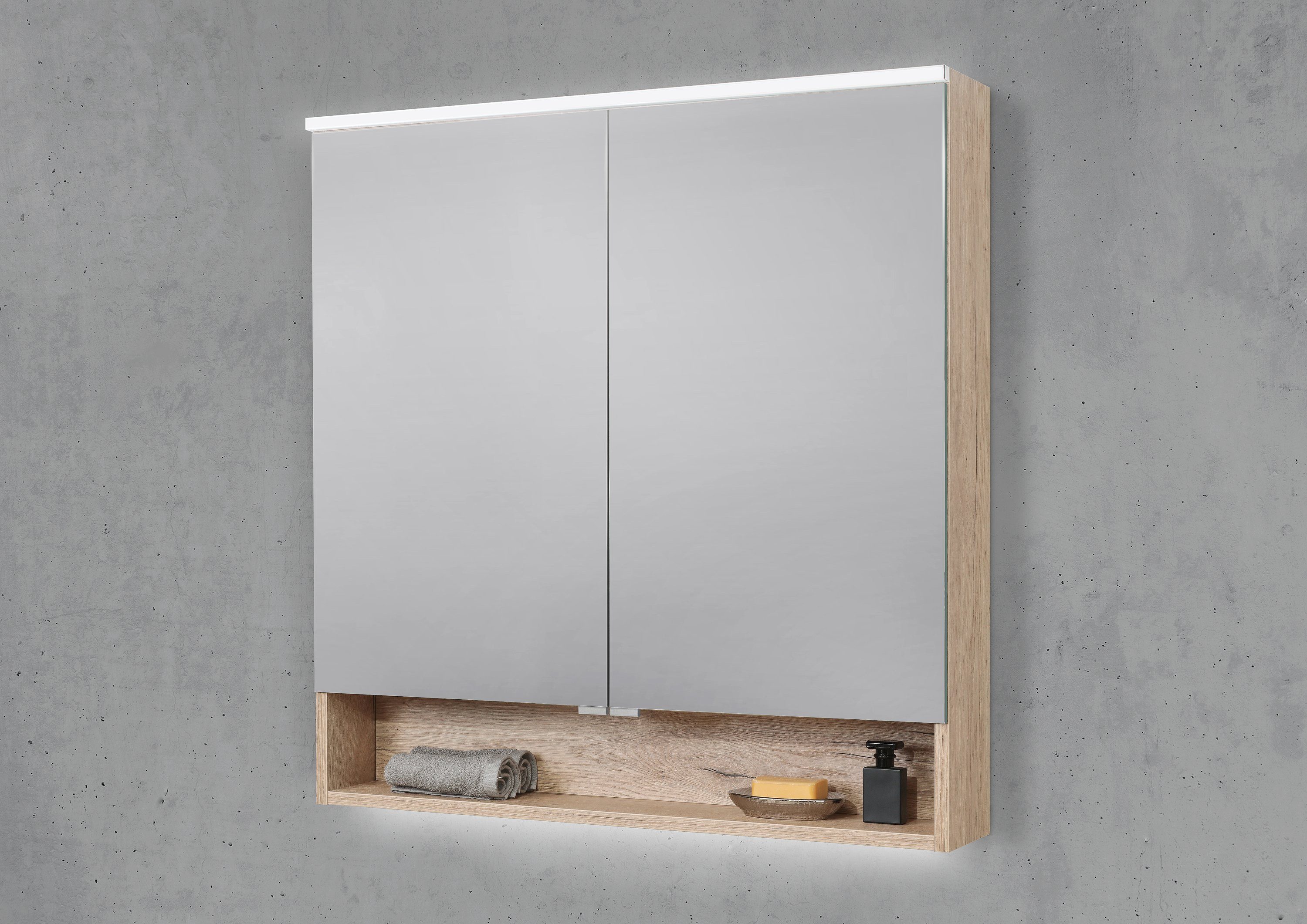Spiegelschrank 80 cm mit offenem Fach integrierte MULTI Light LED