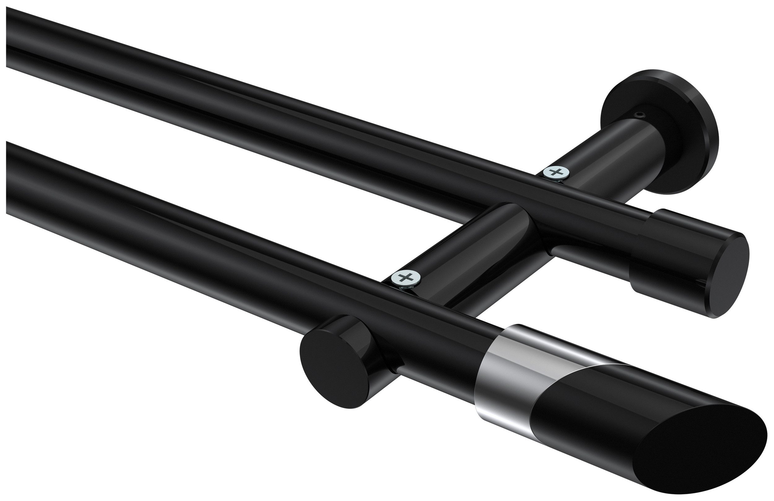 INTERDECO Gardinenstange Platon Verano, Ø 20 mm, 2-läufig, Fixmaß, kürzbar, Wandmontage, Metall, Schwarz