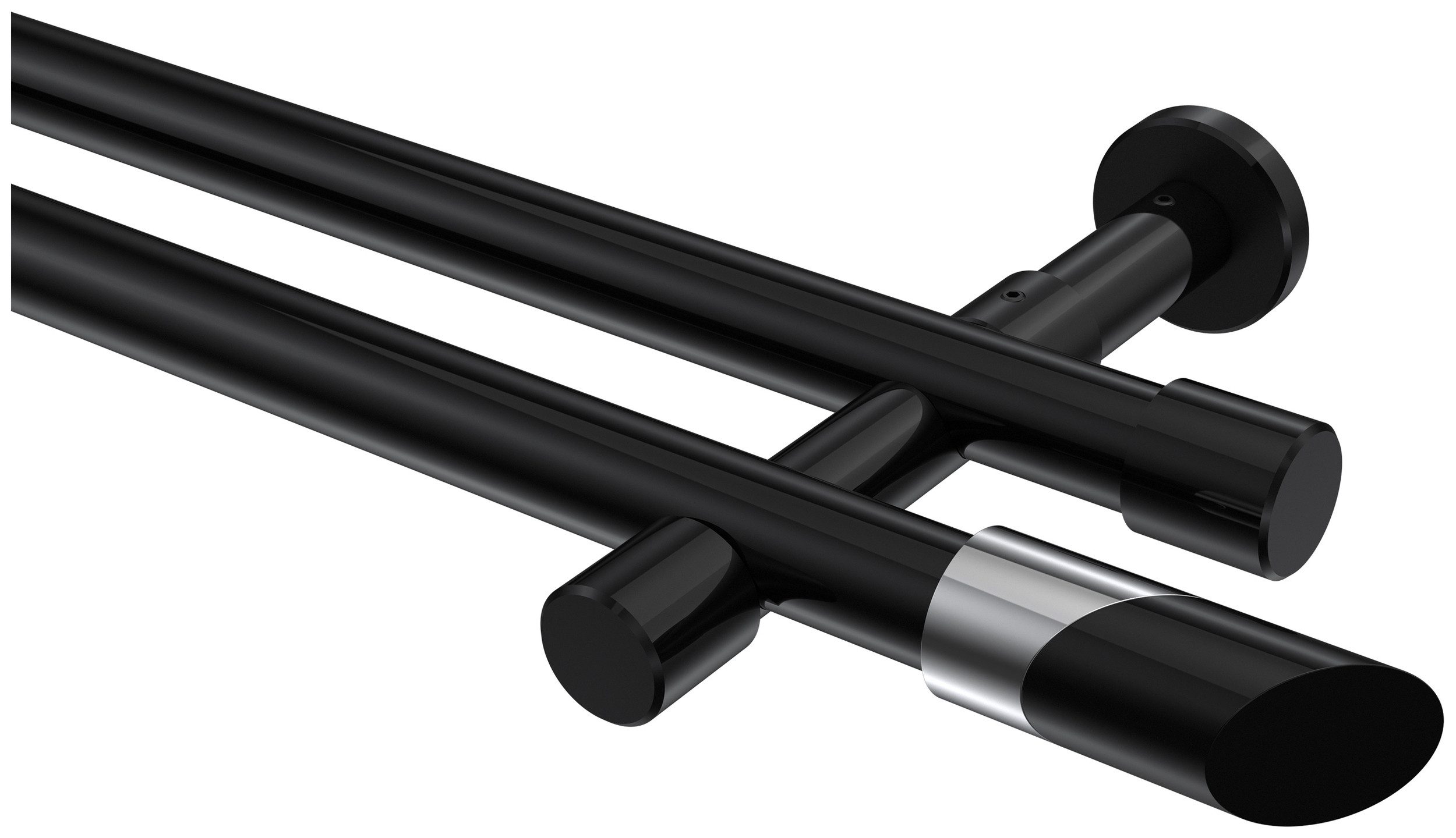 | Lieferumfang | Endstücke "Kappe" Schwarz Endstücke "Schräge / Bicolor" Chrom/Schwarz Rohre 100 cm Schwarz Träger 2-läufig Schwarz inkl. Befestigungsmaterial |