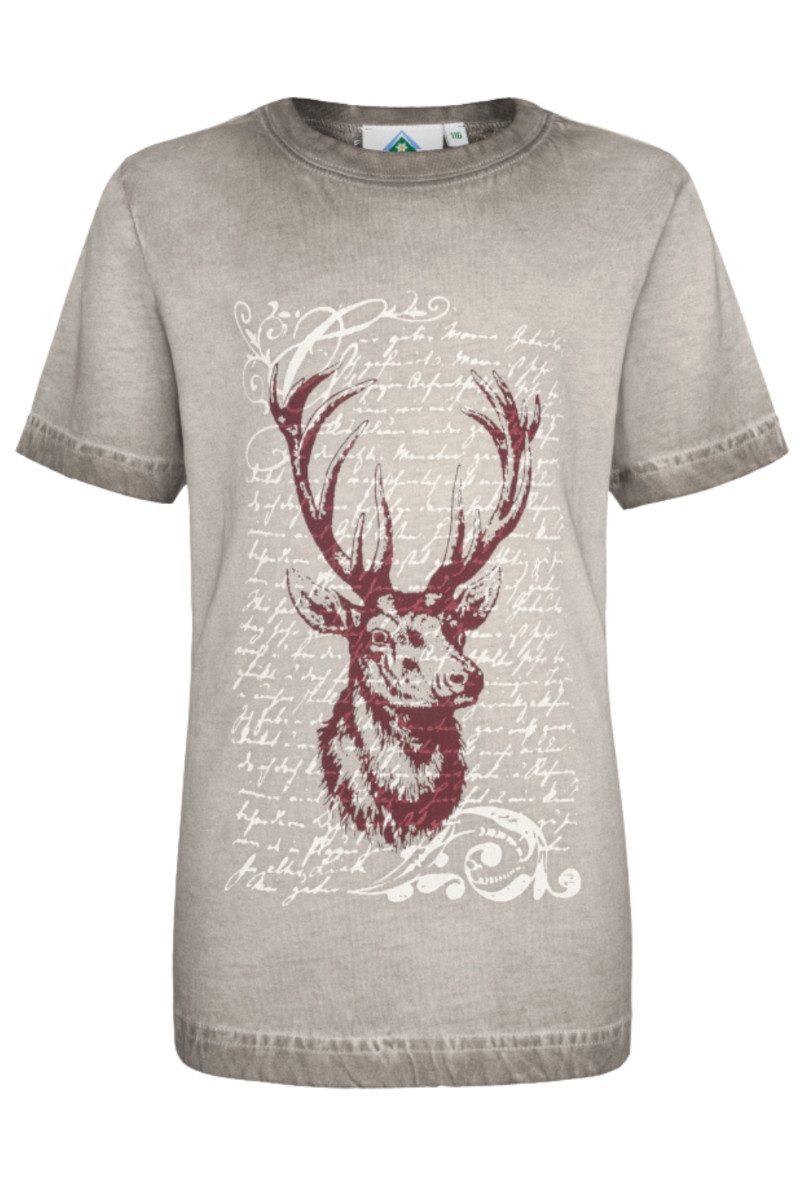 Das coole Trachtenshirt "Stolzer Hirsch" für Buam in Hellgrau wird aus angenehmer Baumwolle in Jersey-Qualität gefertigt, hat einen modischen Oil-Washed-Style, einen dezent abgesetzten Rundhals-Ausschnitt und kurze Ärmel. Der herrliche Aufdruck mit dem tollen Hirschkopf in Weinrot im Realistic-Stil mit dem alten Text in Handschrift in Creme im Hintergrund auf der Vorderseite macht das trendy Baby- bzw. Kindershirt zum Hingucker. Das kurzarm Trachtenshirt für Kinder lässt sich wundervoll zu Lederhose und Trachtenjeans kombinieren. Bitte beachten Sie ab Größe 110 die Größenzuschläge.